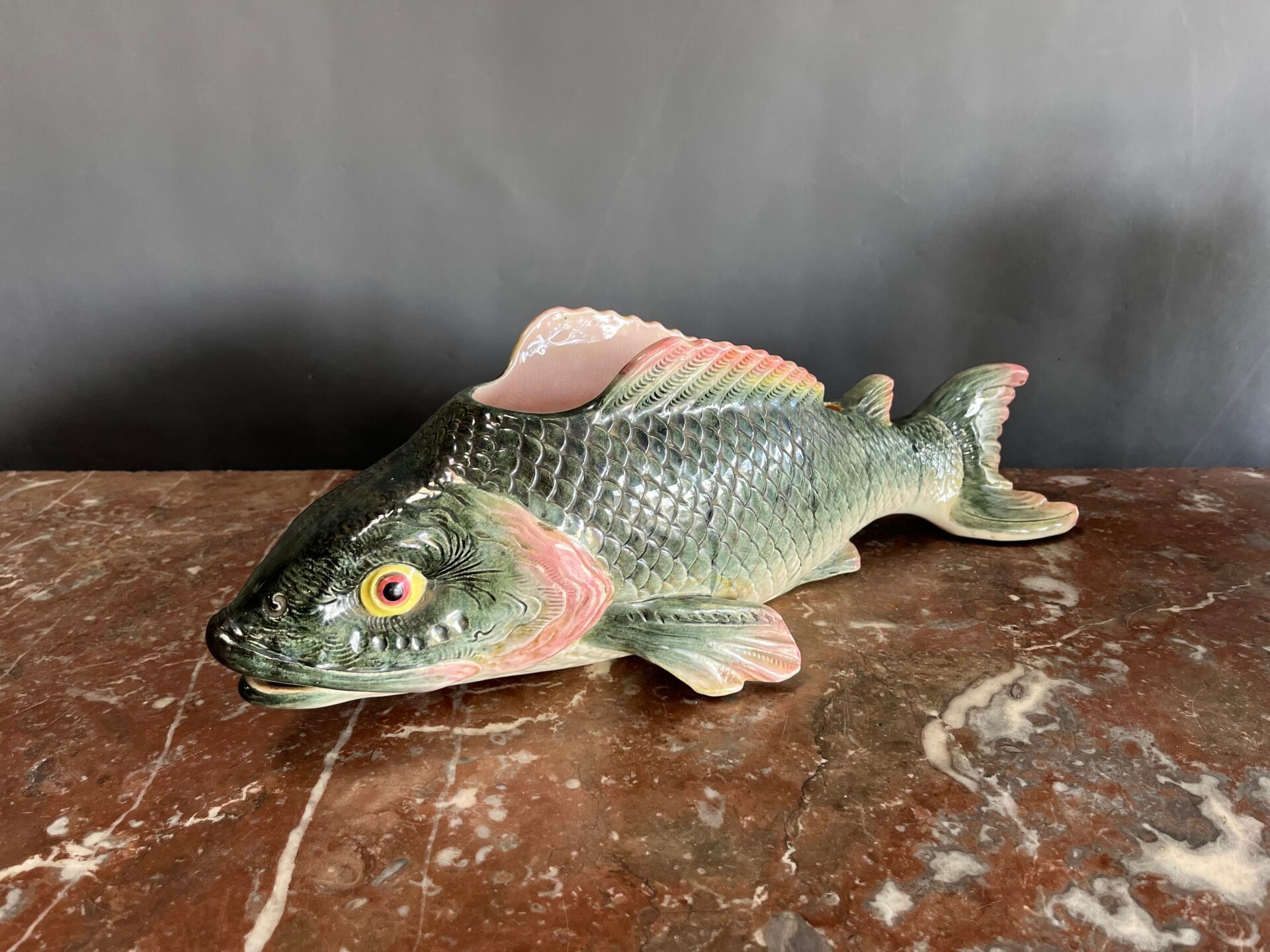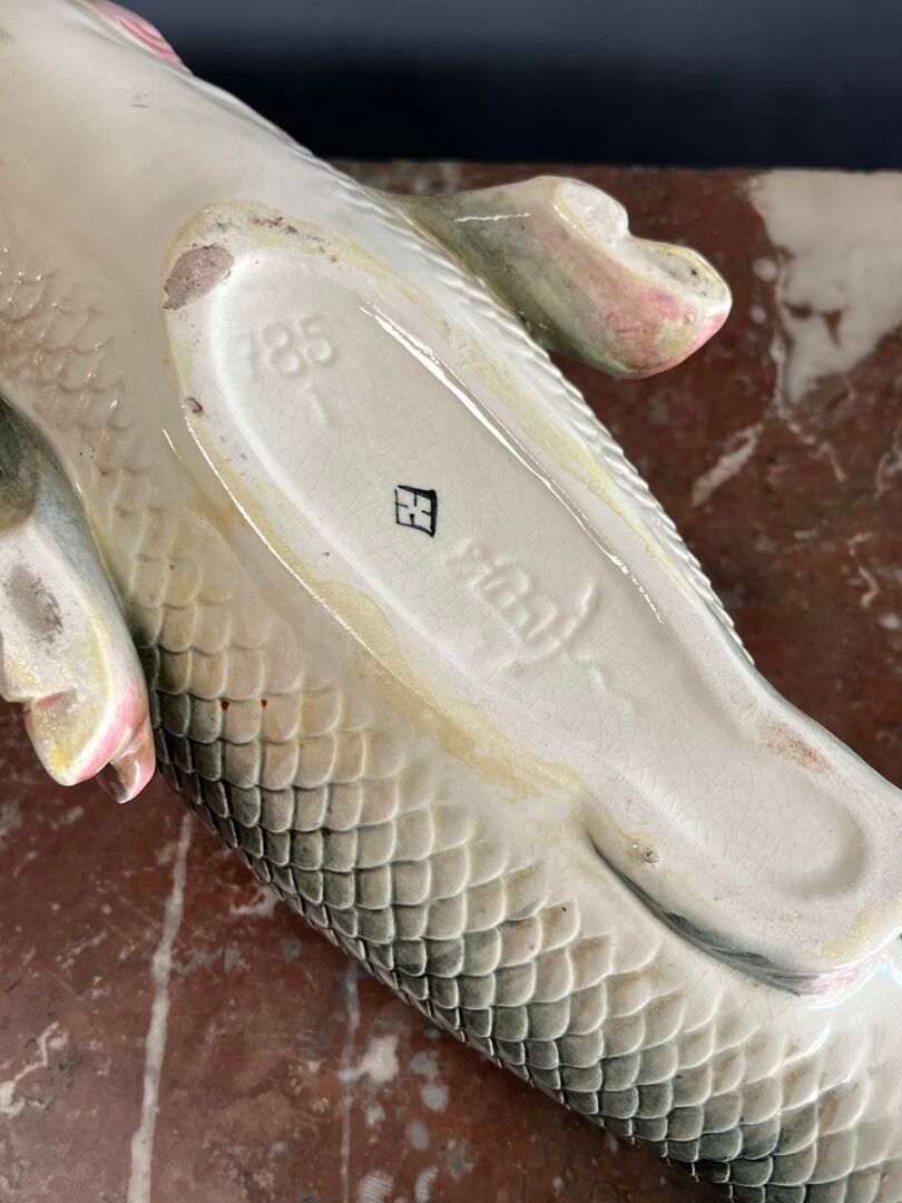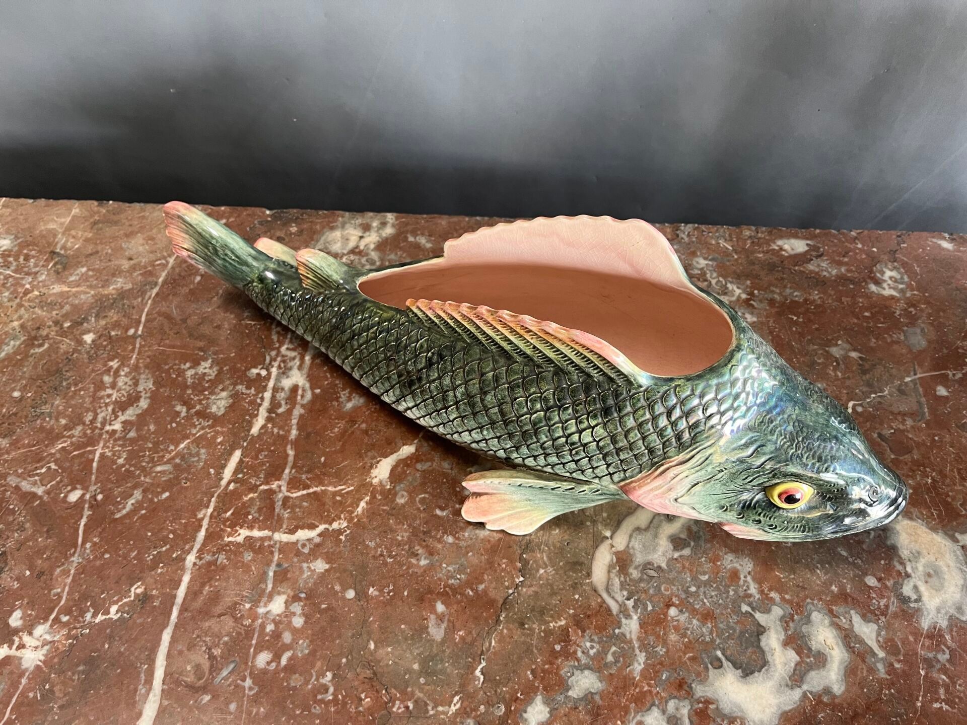 Planter in barbotine showing a fish.