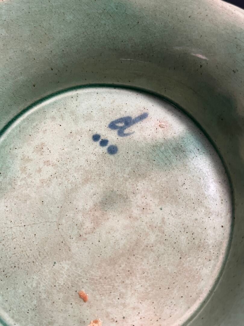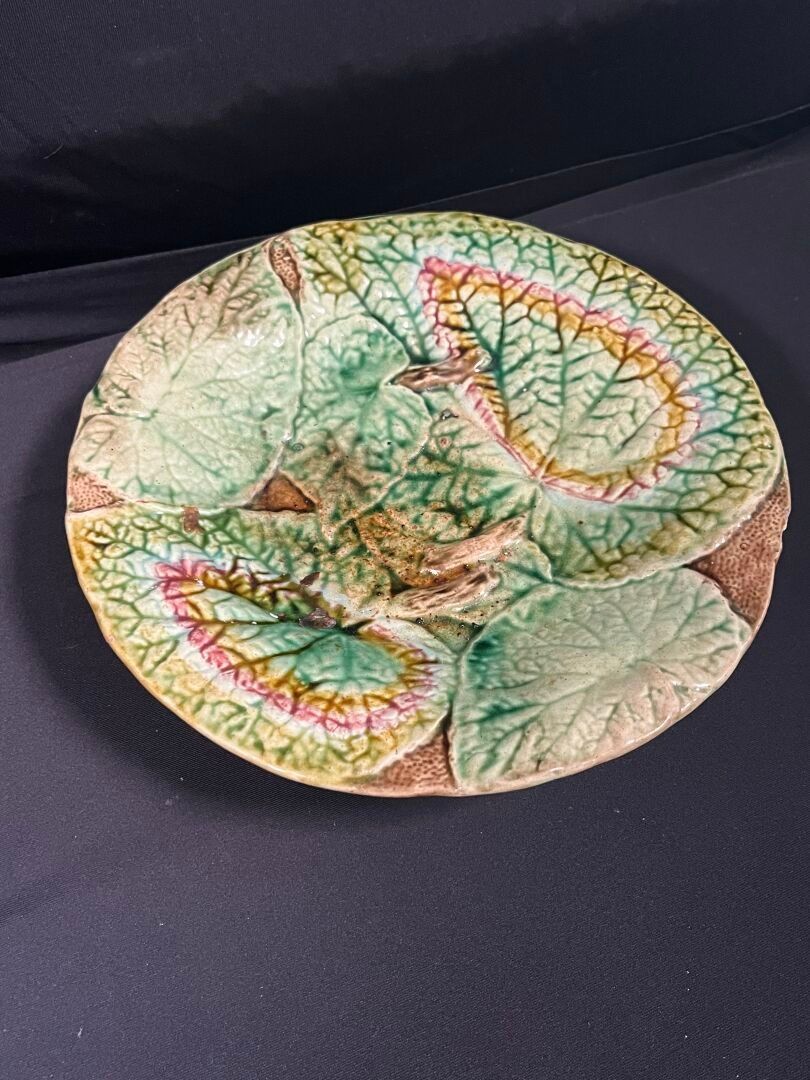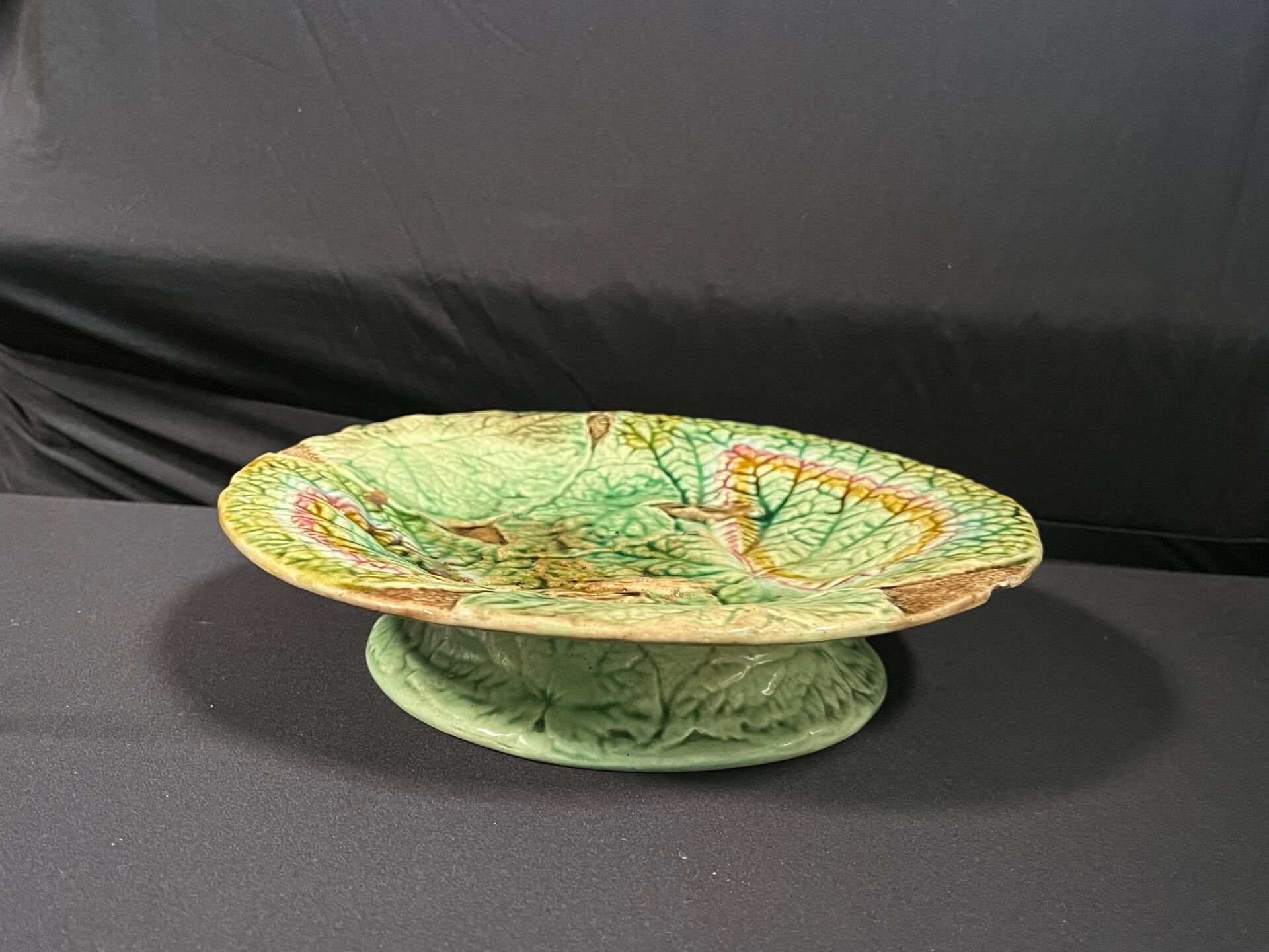 -Cake plate decorated with begonia leaves. Mark on the reverse.
