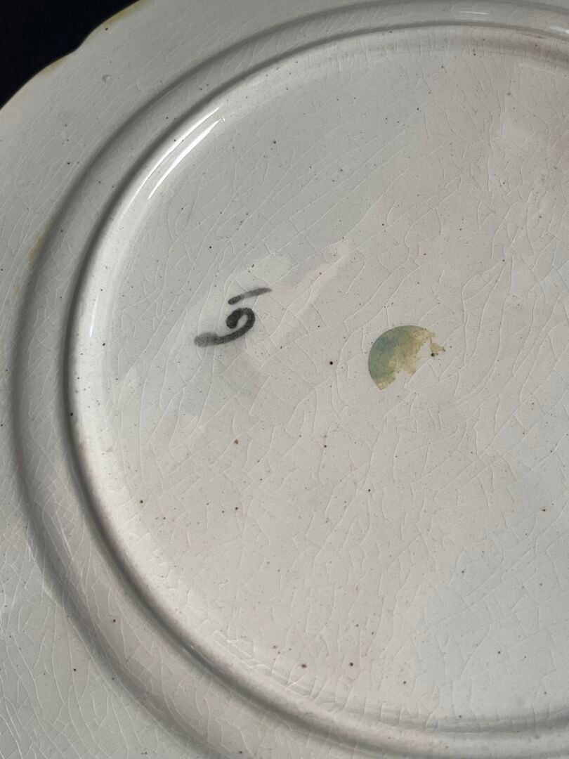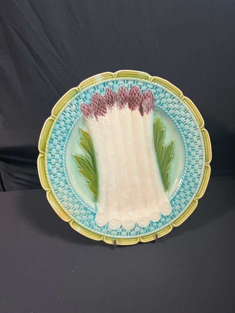 Plate decorated with asparagus and wickerwork. Mark on the reverse.