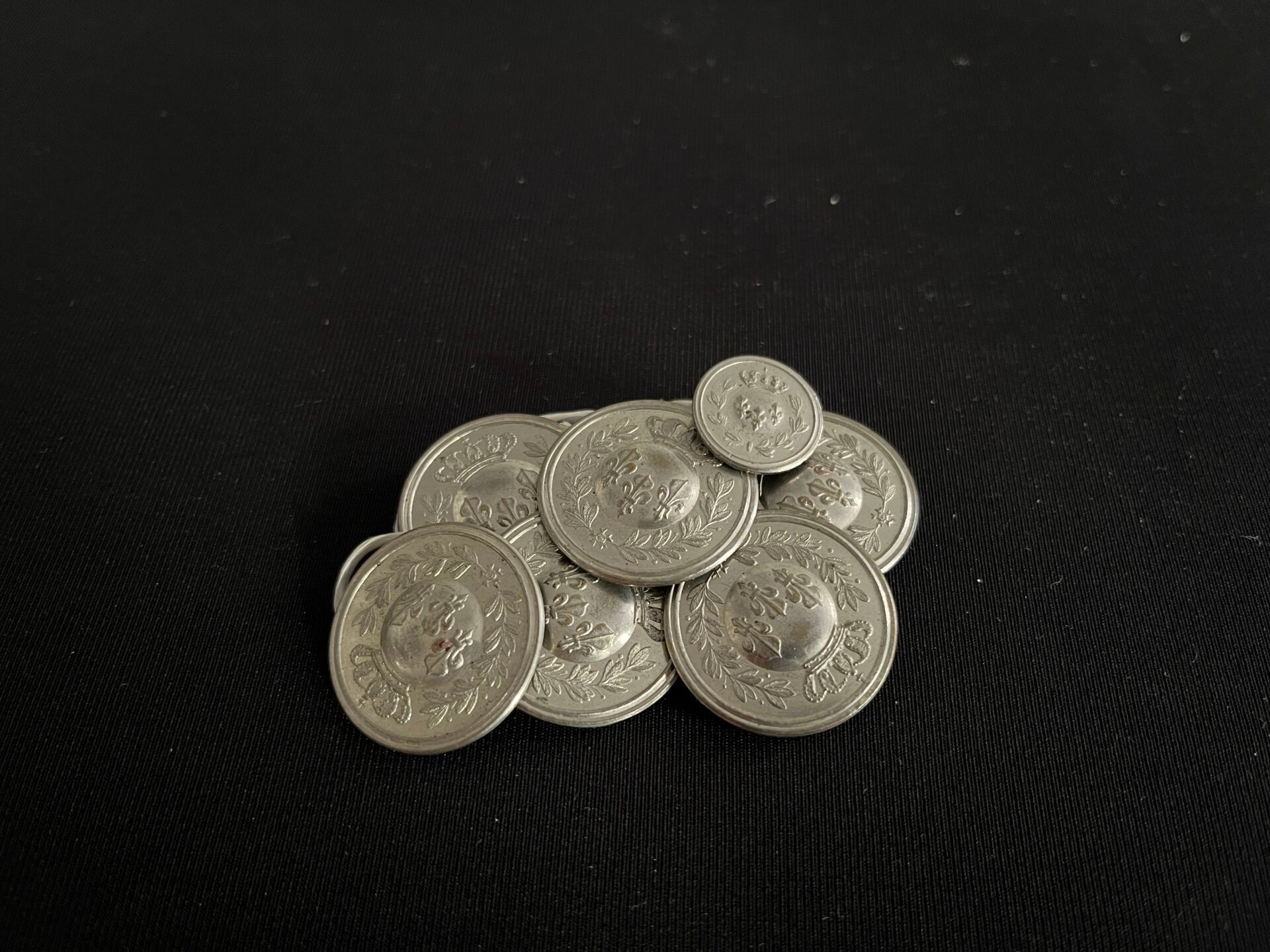 LOT of six large civil servant knobs, and one small civil servant knob, in cast pewter.