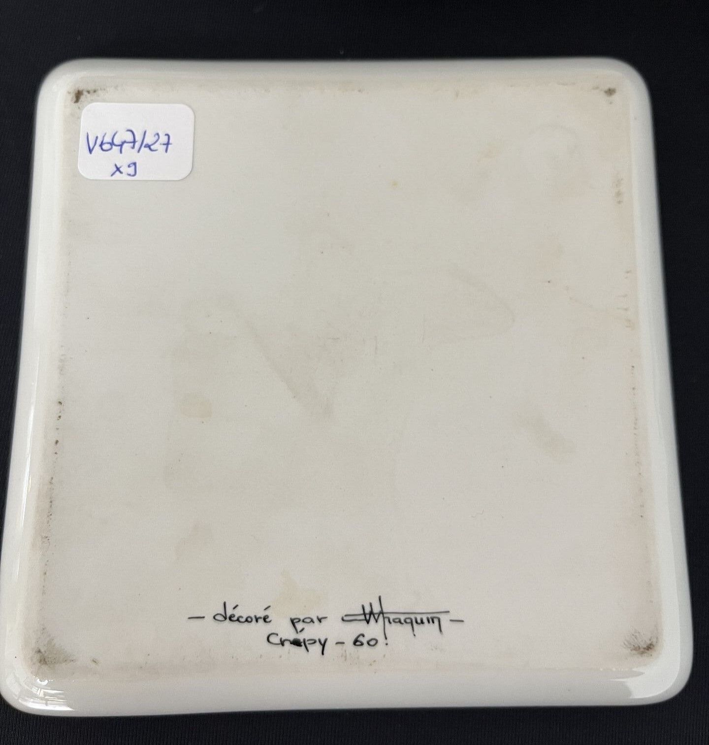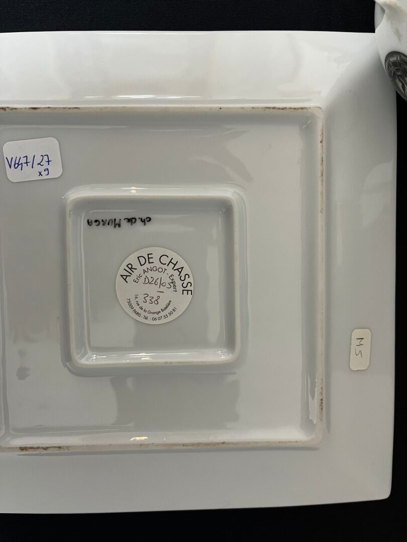 - Chantal de MURGA. Large square porcelain pocket with polychrome decoration of veneur outfits from 1661 to 1930.