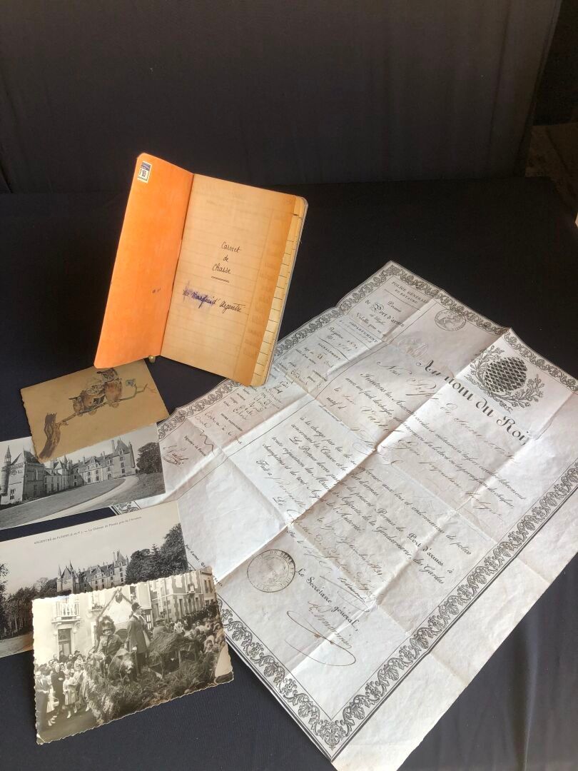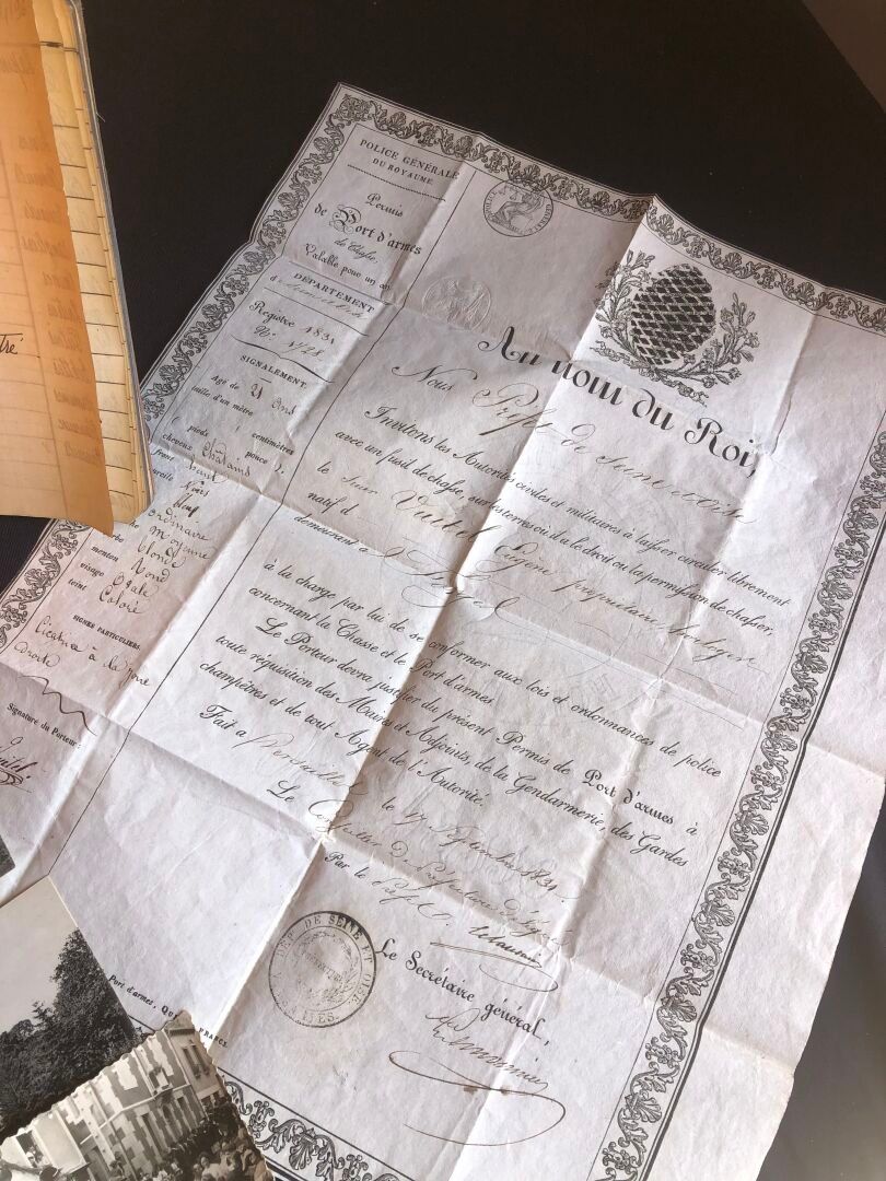 Enclosed: a licence to carry a hunting weapon, postcards and photographs.