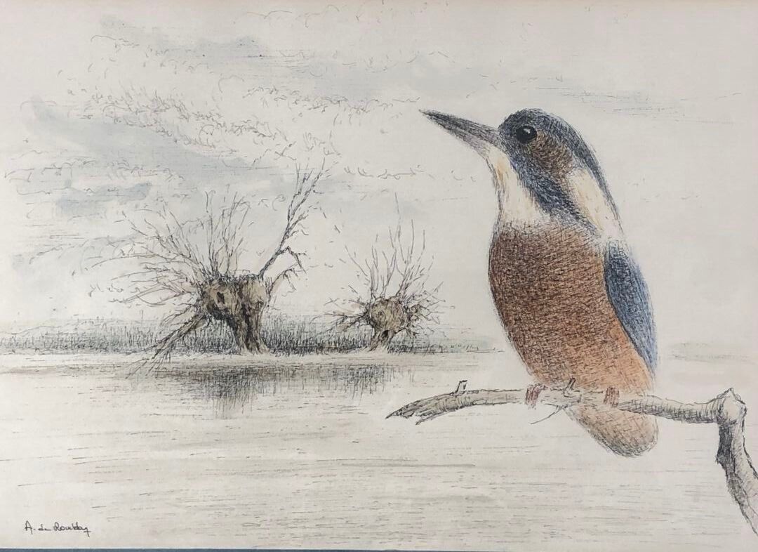 Alain DE ROMBLAY (XX-XXI) Kingfisher in a landscape.