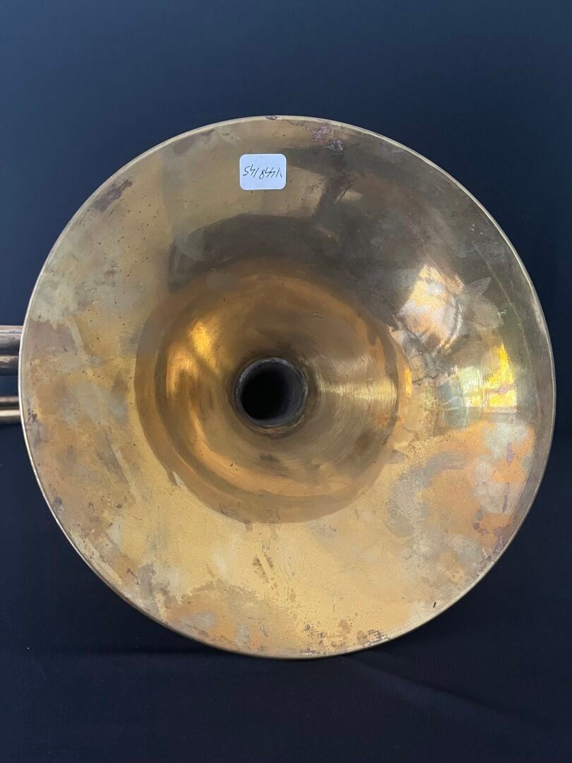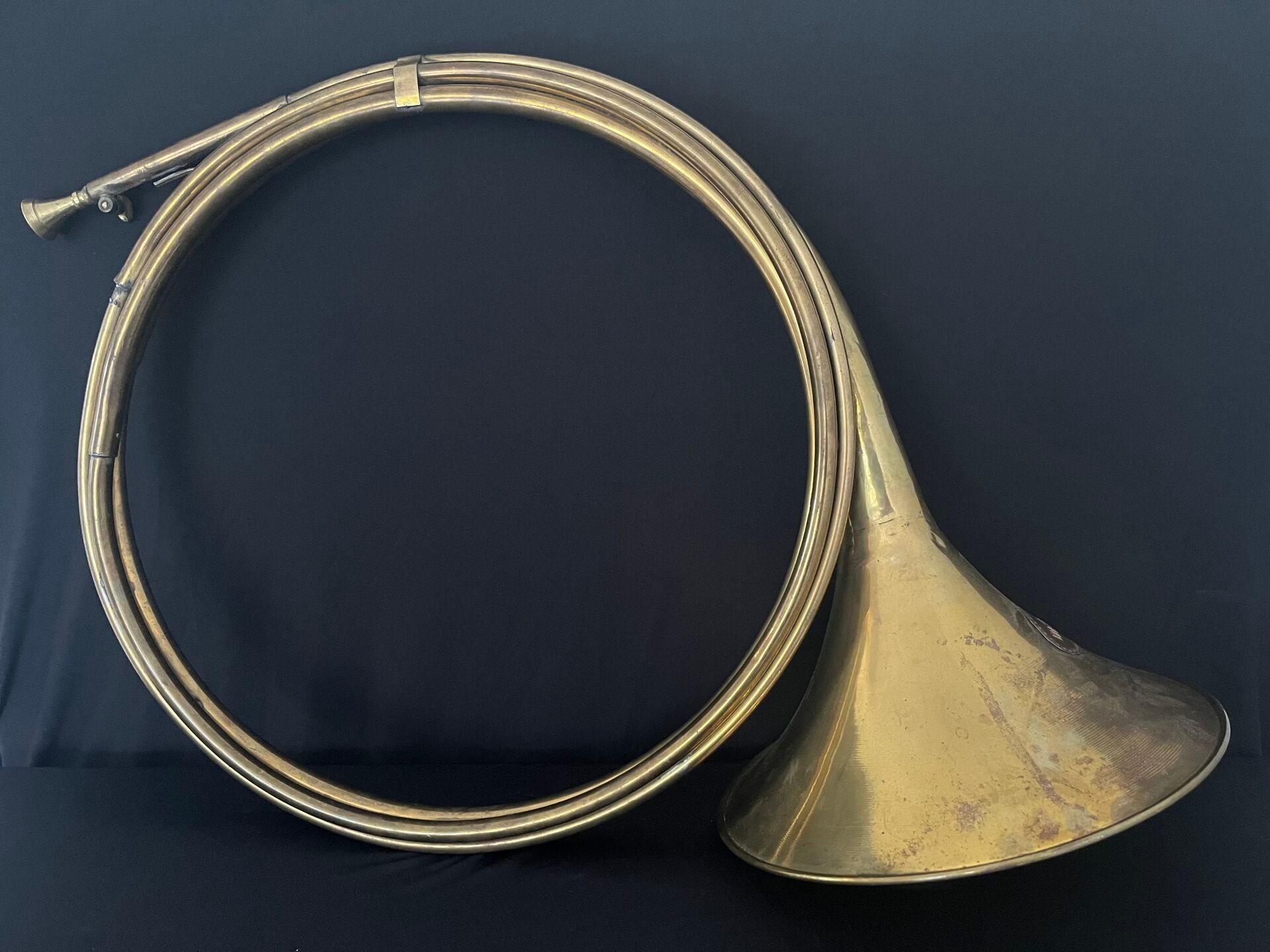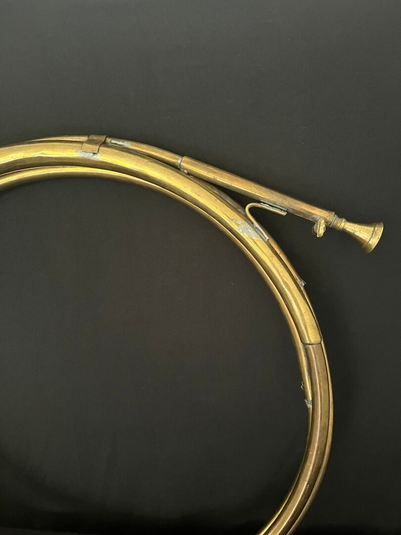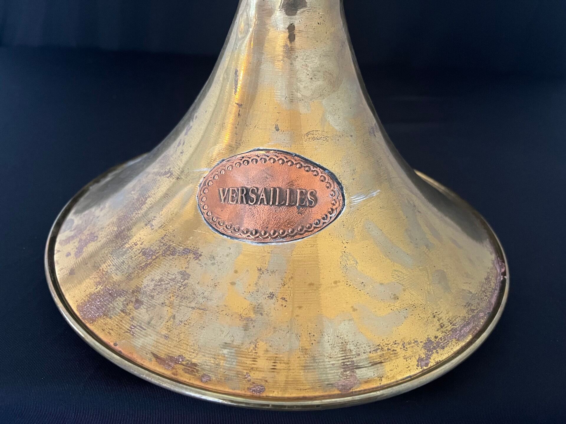 Brass and copper hunting pump, "Versailles" cartouche soldered on the horn.