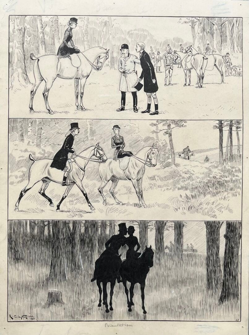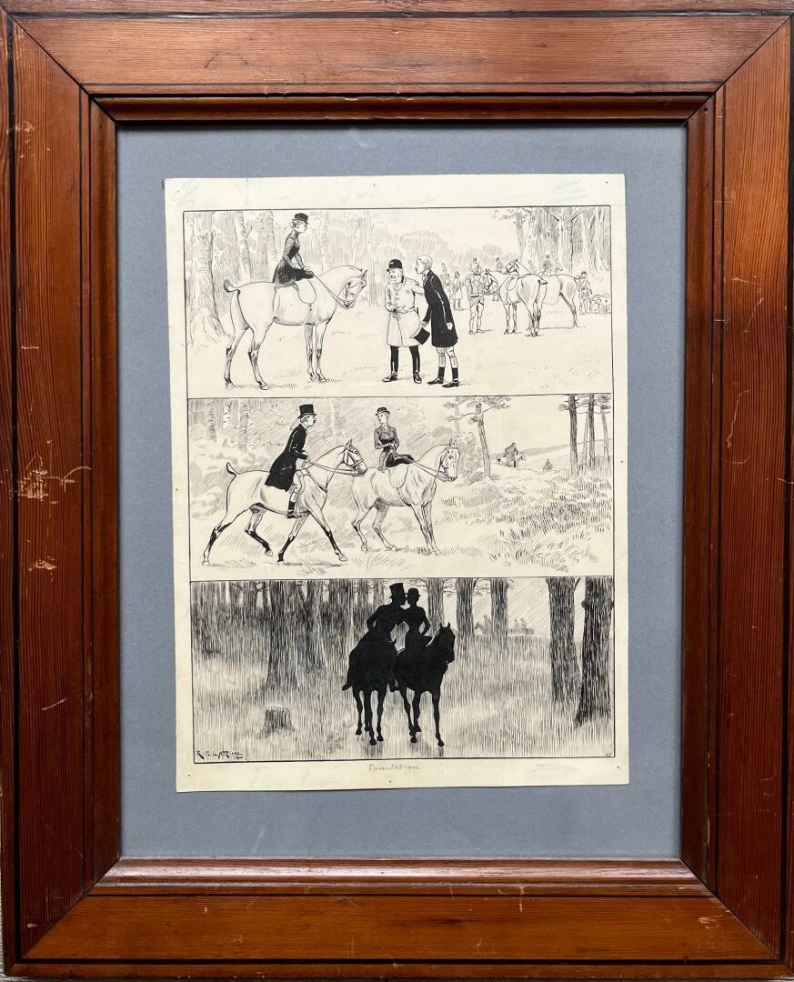 Indian ink plate divided into 3 boxes, signed and dated 1901 lower left.