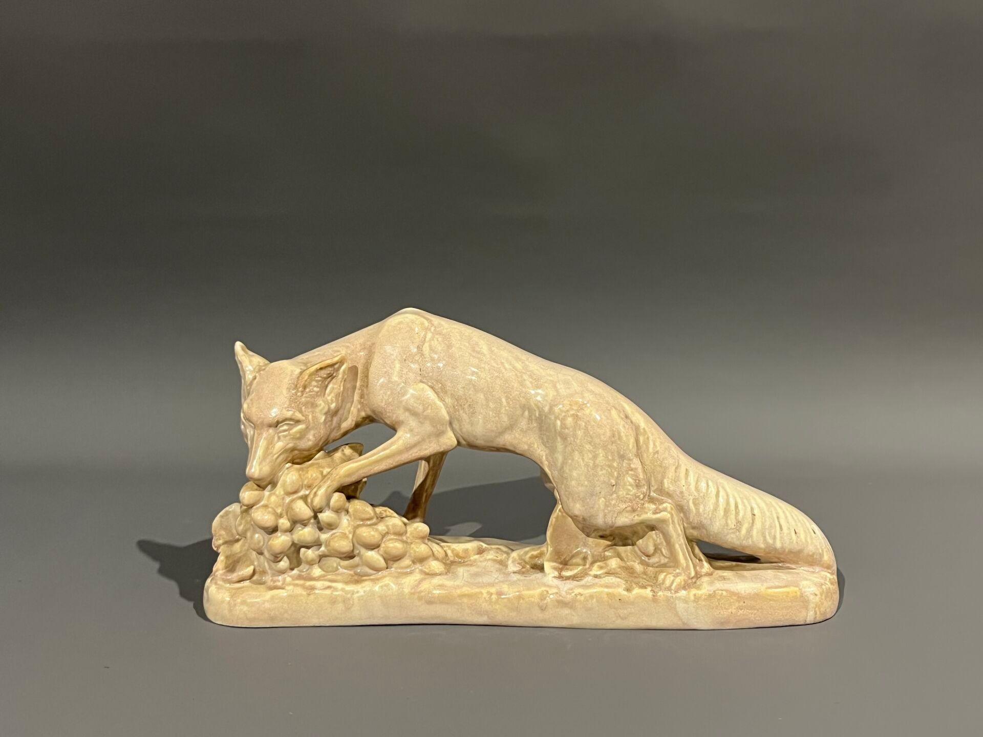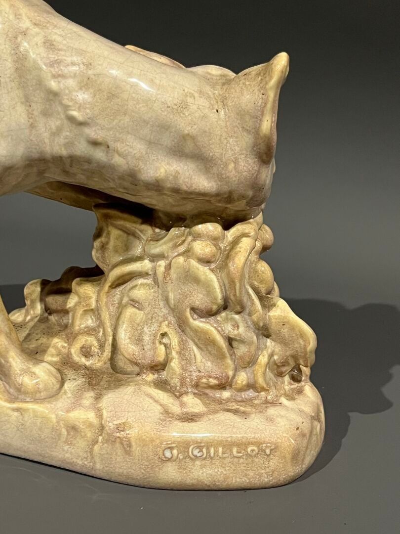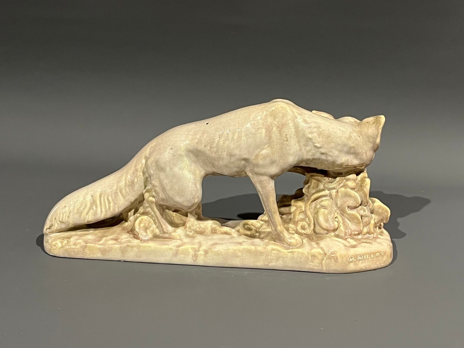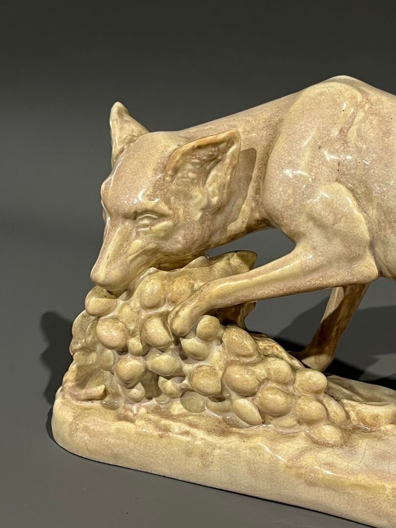 G. GILLOT Fox and grapes. Ceramic subject signed on the terr…
