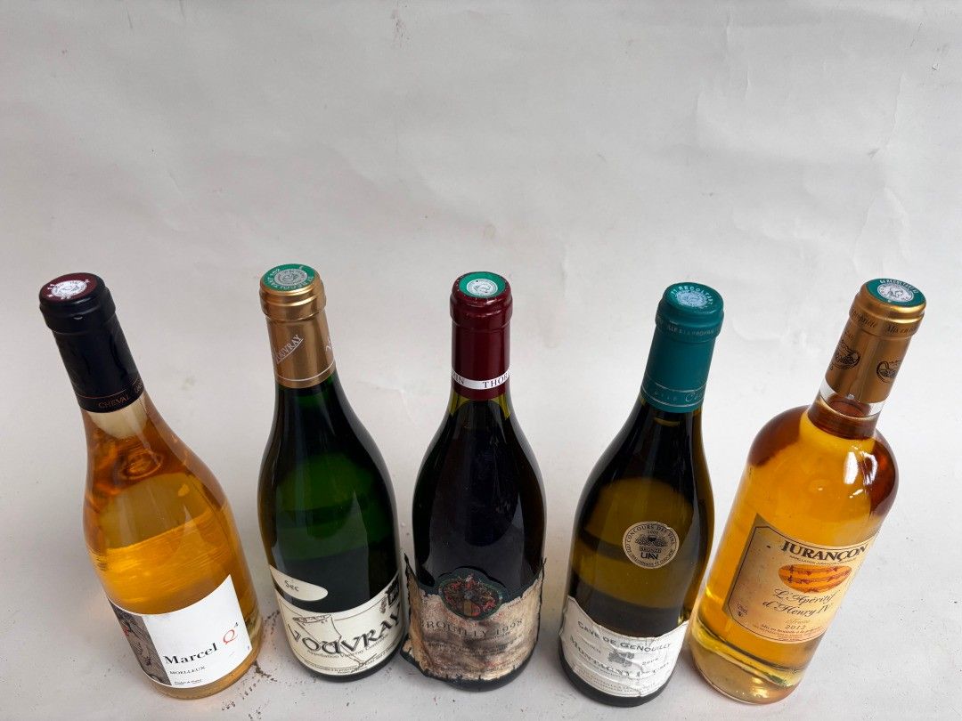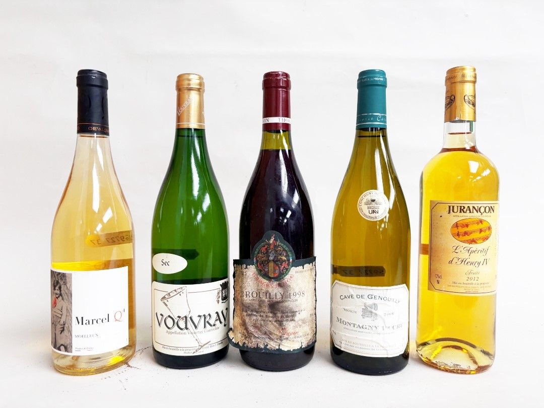 5 Bottles MISCELLANEOUS WINES FRANCE FOR SALE AS IS including Brouilly 1998, Vouvray, Marcel Q, Montagny 1er Cru 2008, Jurançon 2012.