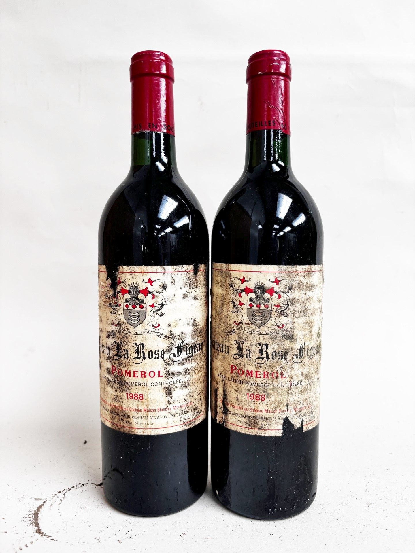 2 Bottles Château La ROSE FIGEAC 1988 1988 Stained and damaged label.