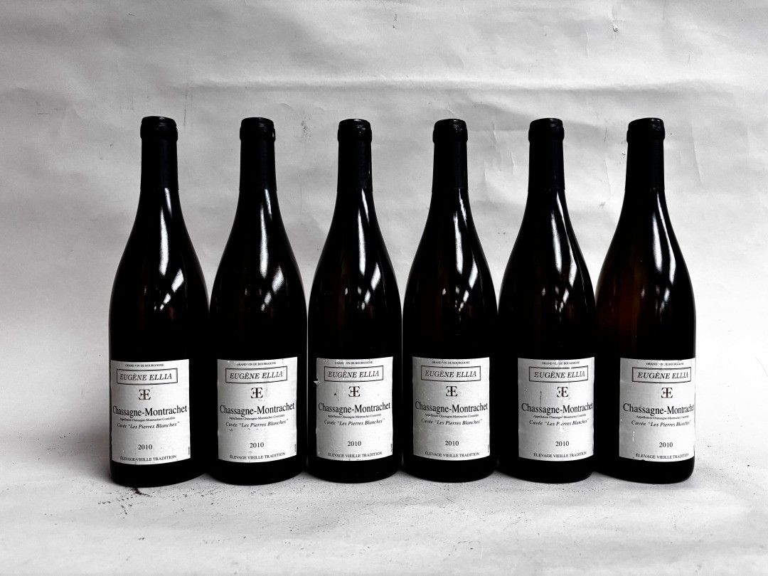 6 Bottles CHASSAGNE MONTRACHET Blanc "Les Pierres Blanches" 2010 - Eugène ELLIA 2010 Slightly stained labels.