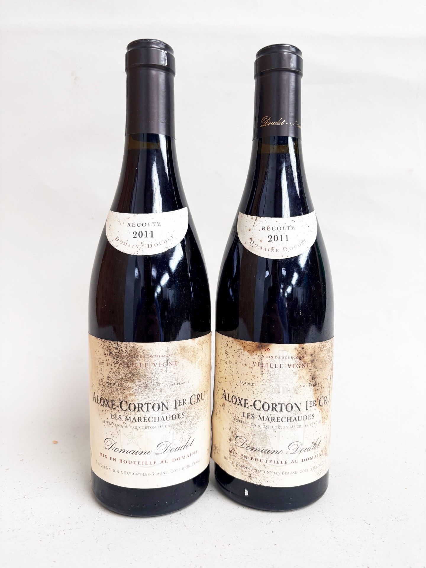 2 Bottles ALOXE CORTON 1er Cru "Les maréchaudes" VV 2011 - Domaine Doudet 2011 Slightly stained labels.