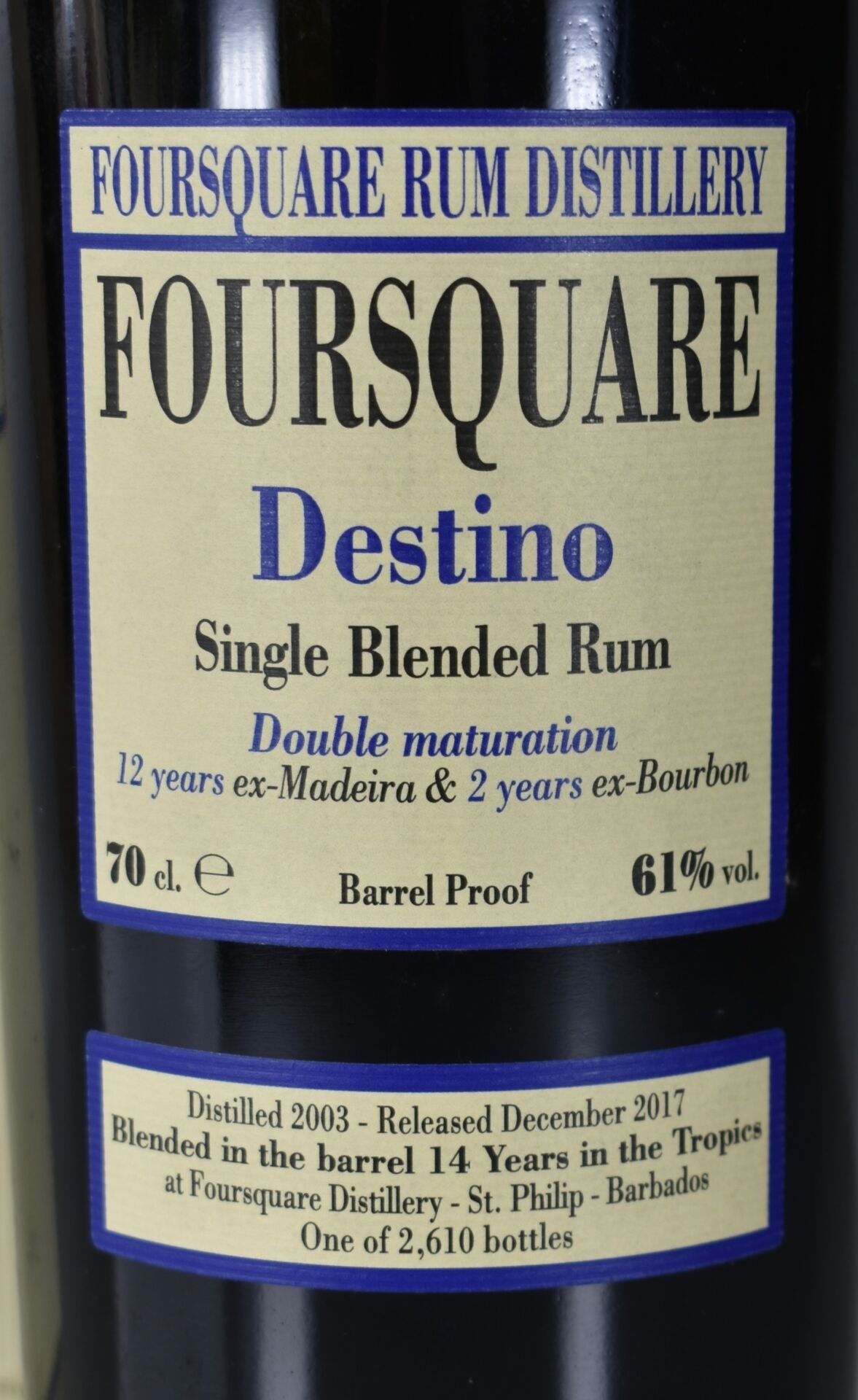 1 Bottle RUM Vieux FOURSQUARE DISTILLERY 14 years DESTINO, Single blended (Limited Edition of 2610 Bottles) 70cl-61%, in its case - St Philip Barbados