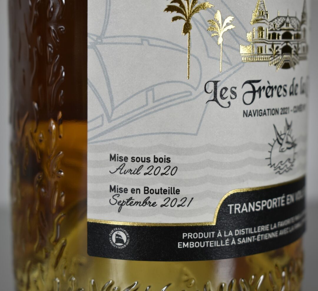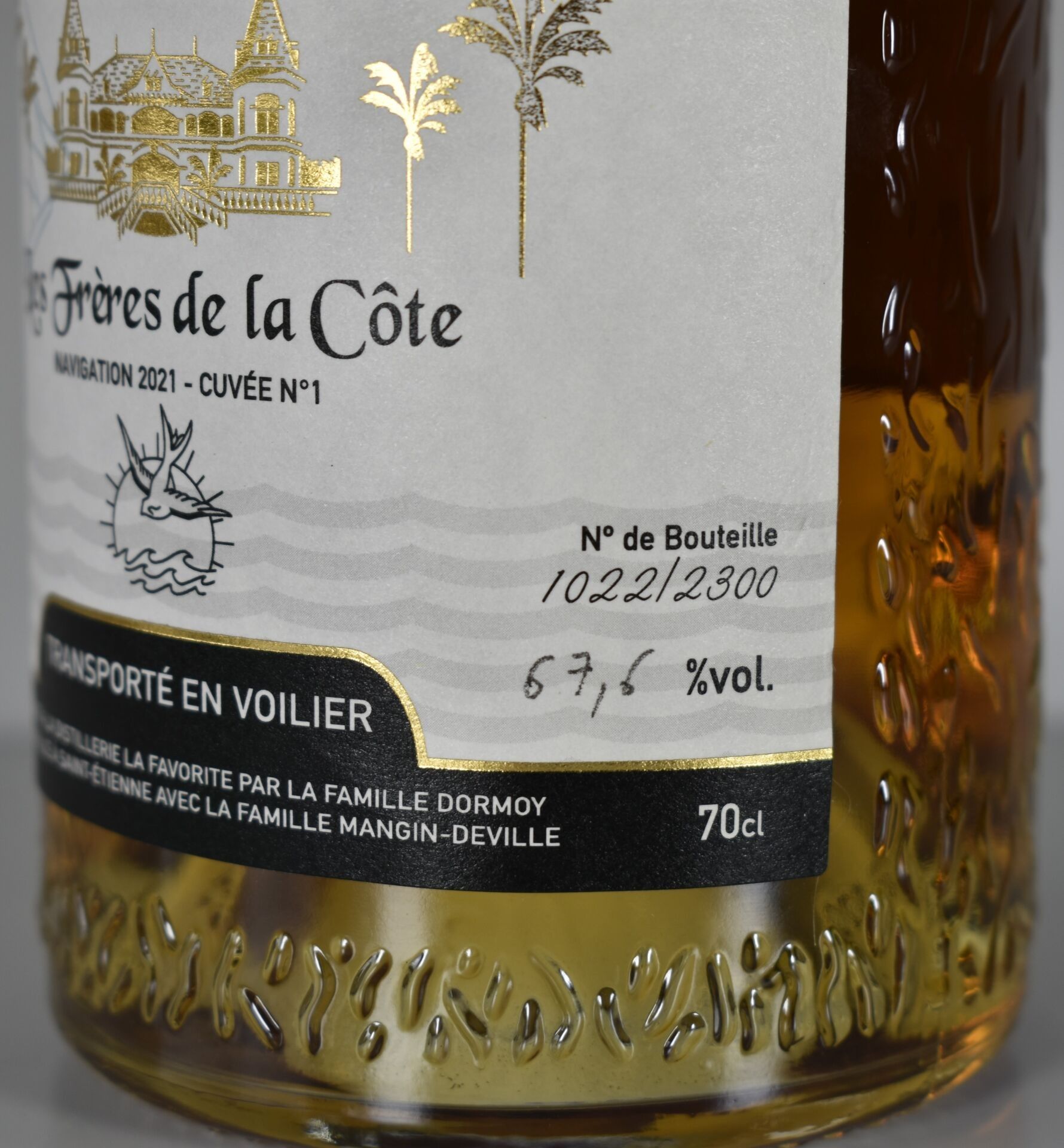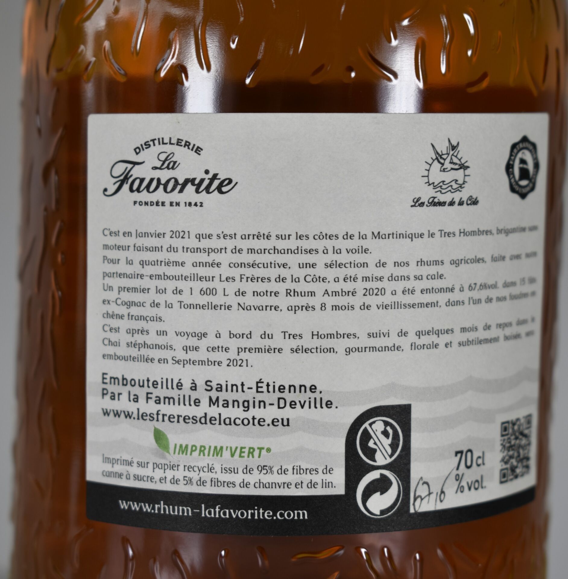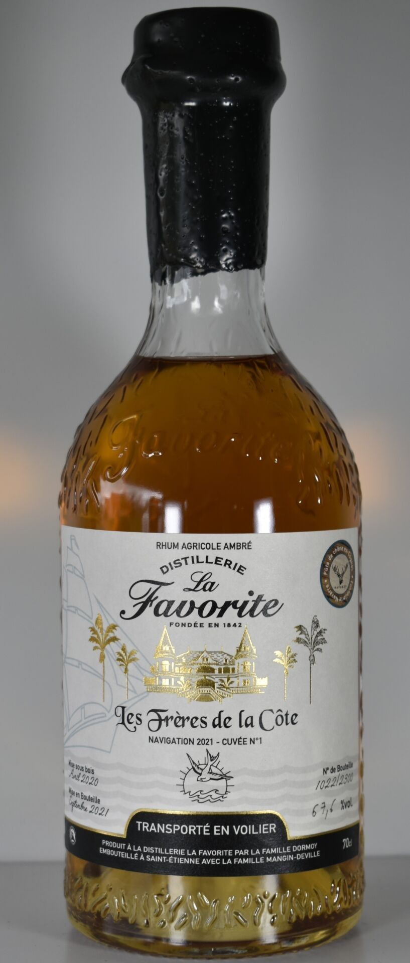 1 Bottle of RHUM Agricole ambré LA FAVORITE "Les Frères de la Côte", cuvé N°1 de 2021, transported by sailboat - 70%-67.6% - Martinique - N°1022 of 2300