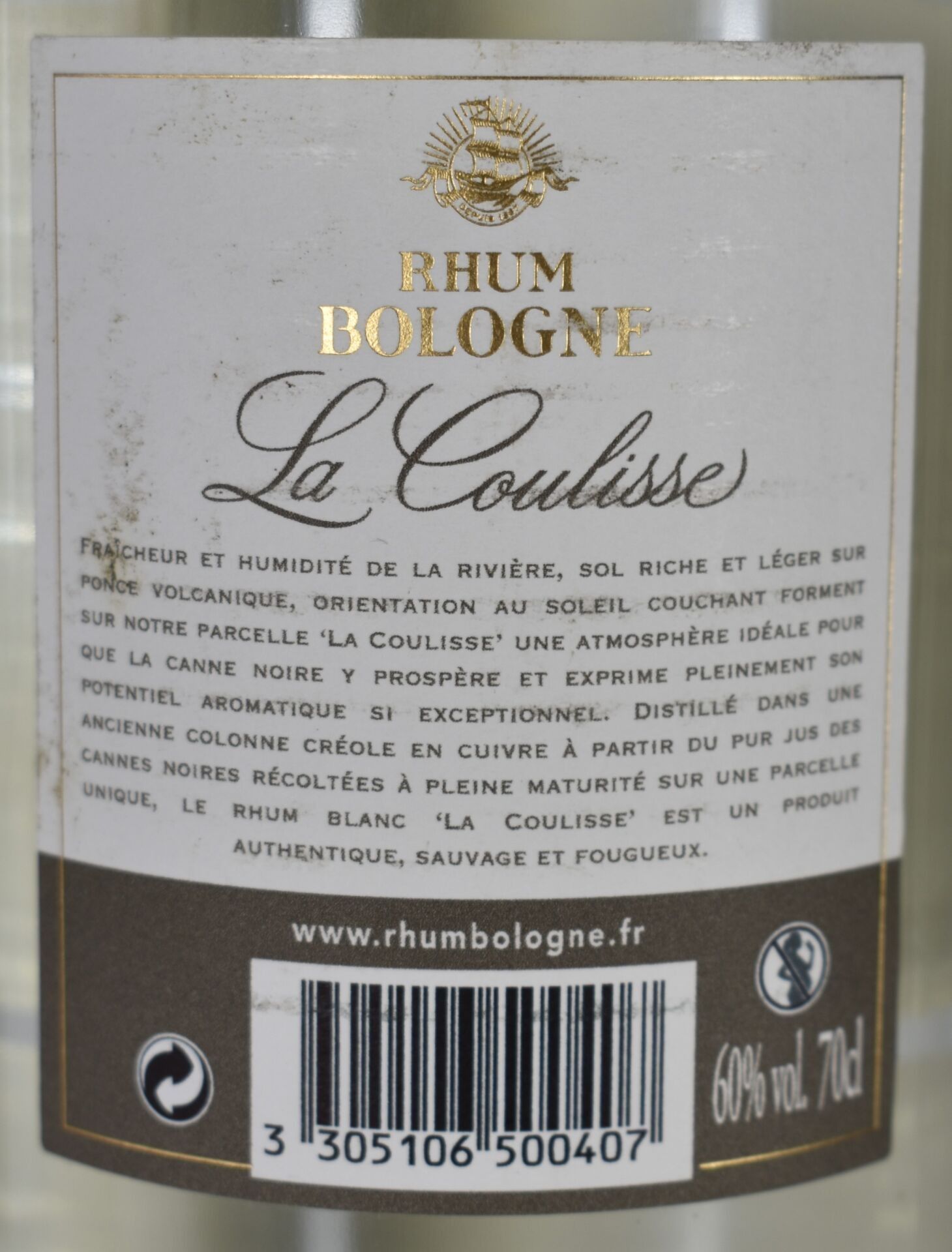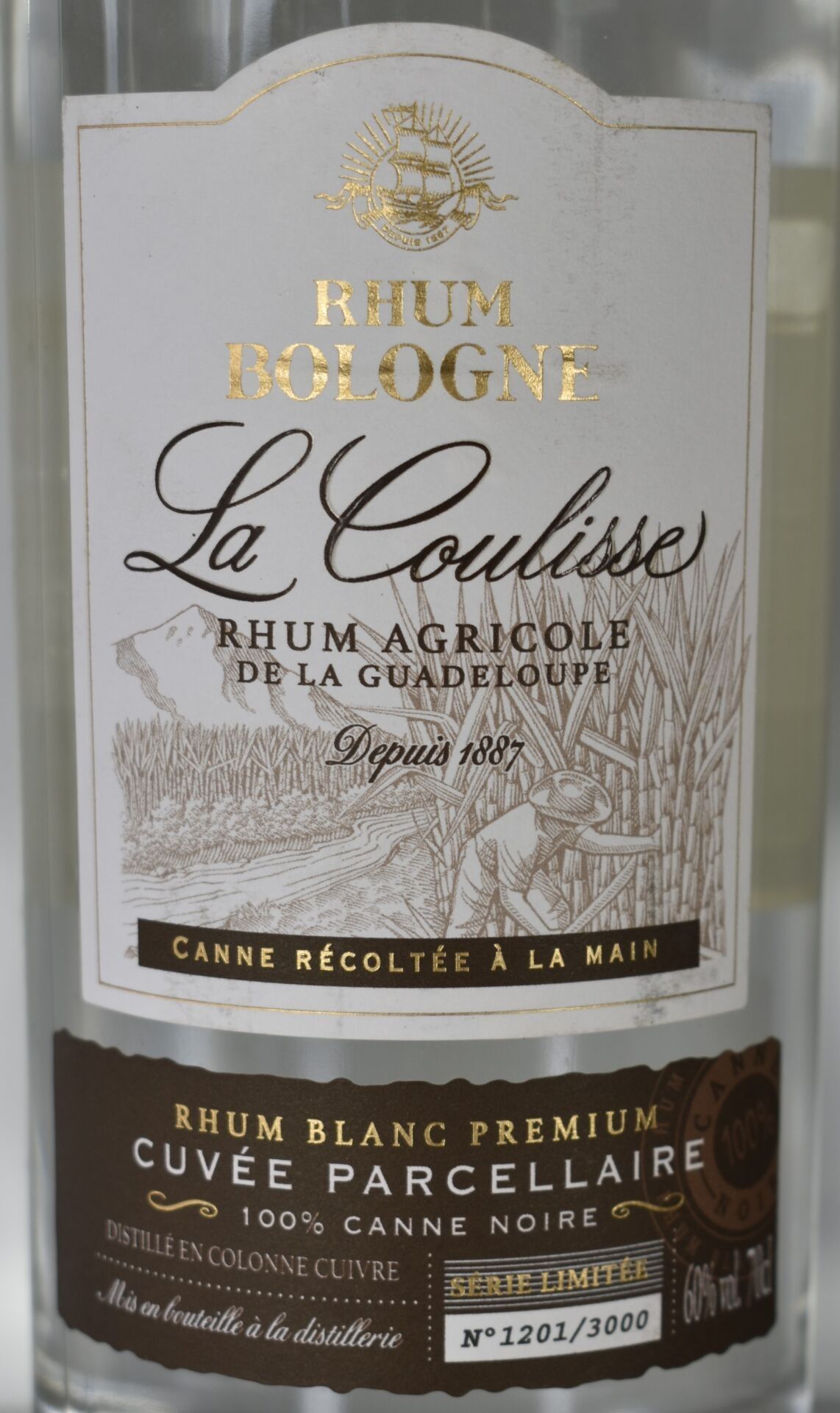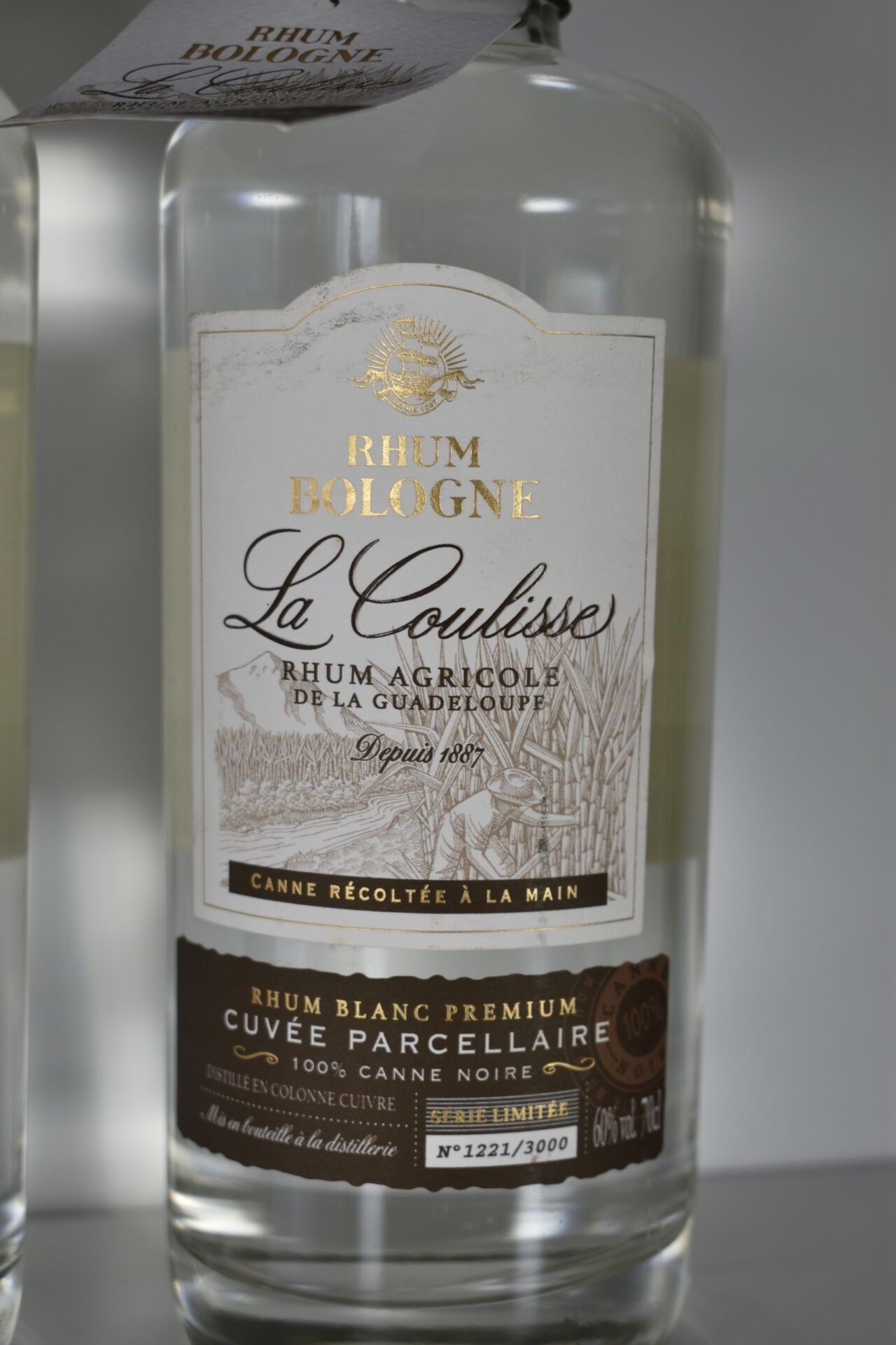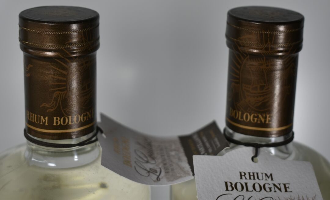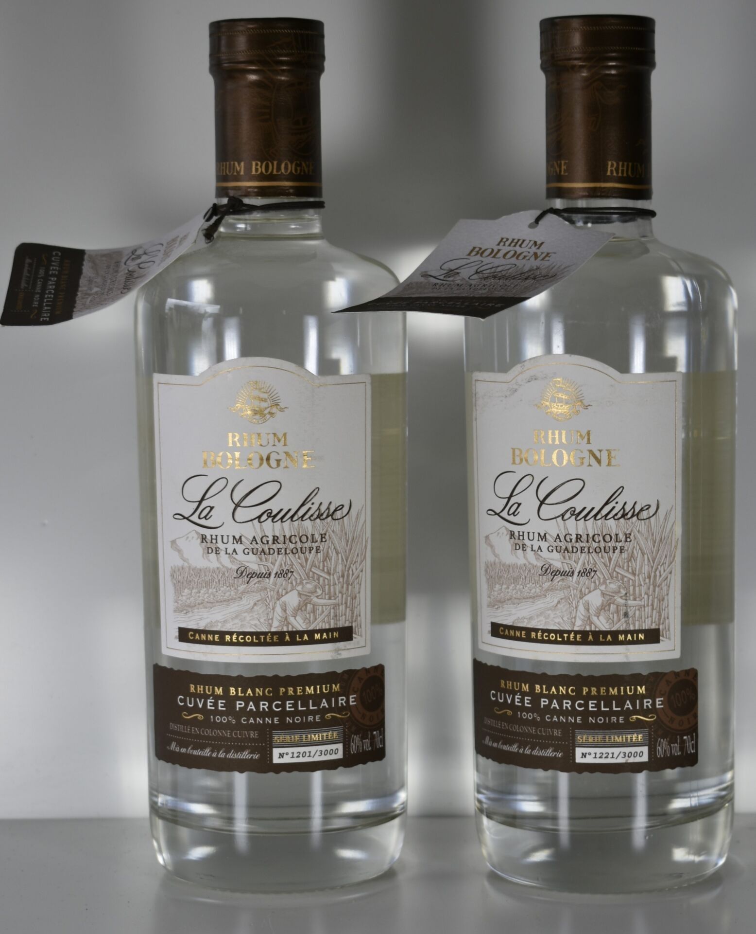 2 Bottles of BOLOGNA Prémium white agricultural RHUM "LA COULISSE", 100% black cane, limited edition (1201 and 1221 out of 3000) 70CL - 60% - Guadeloupe