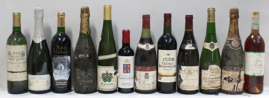 In four cases, a batch of around 80 bottles in their original condition, including Mercurey 1991, Bordeaux, crémants, muscats, producers' wines, etc.