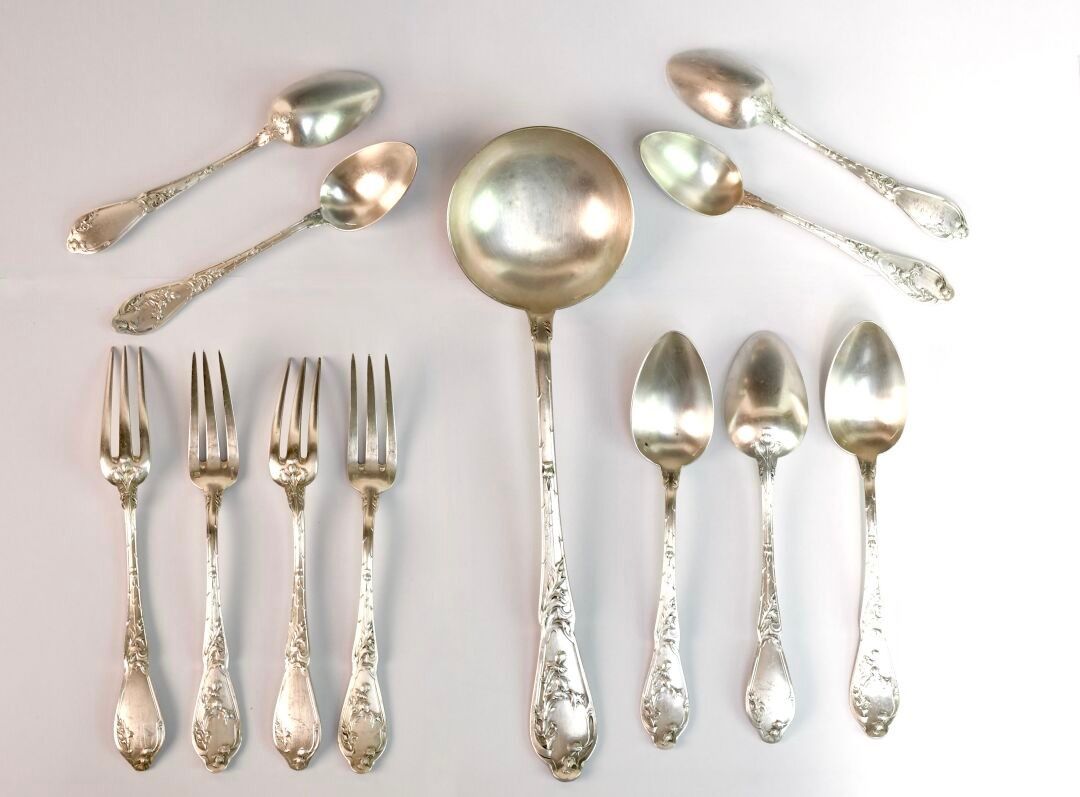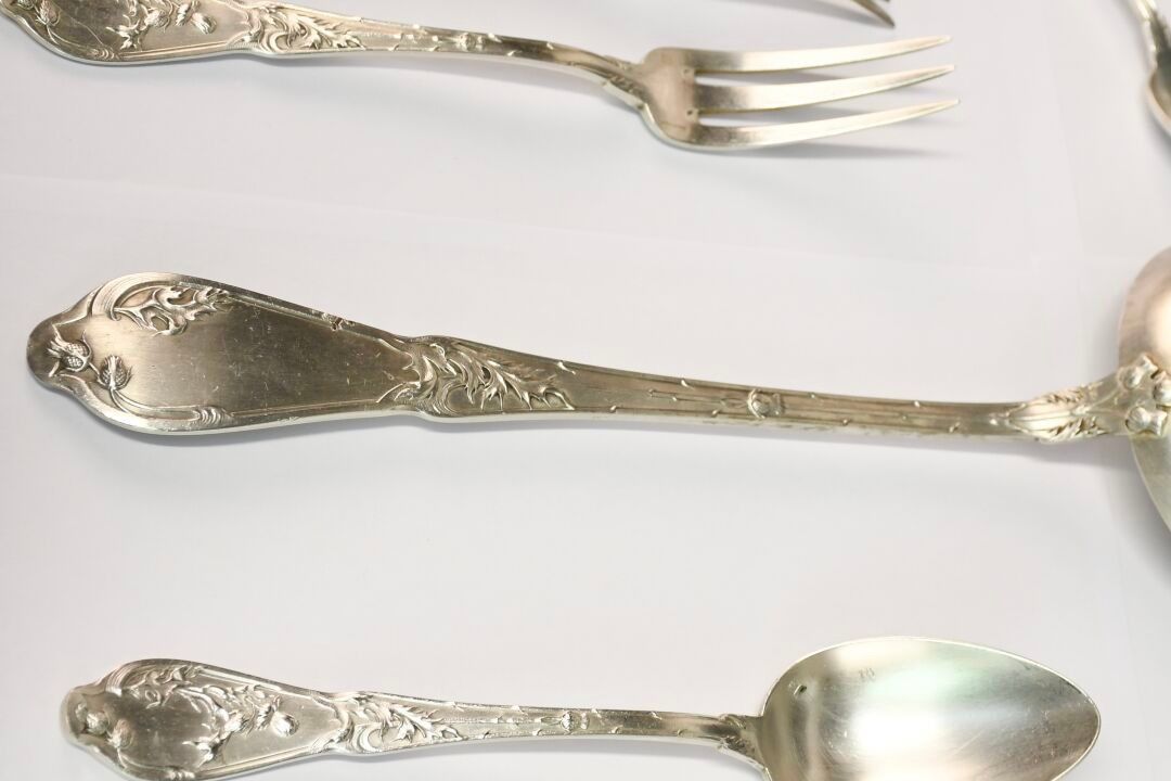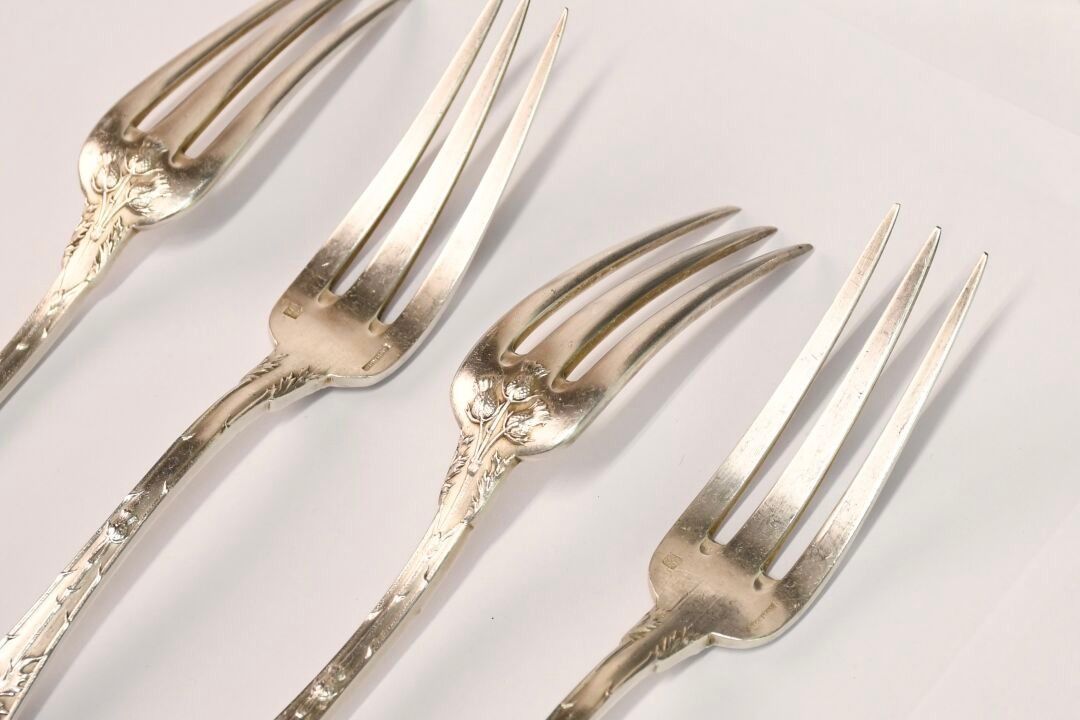 Part of a silver-plated thistle-style Art Nouveau menagère