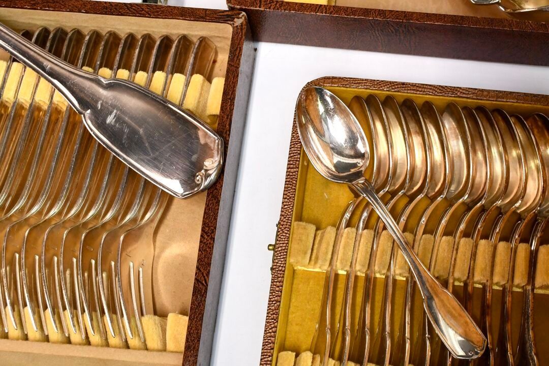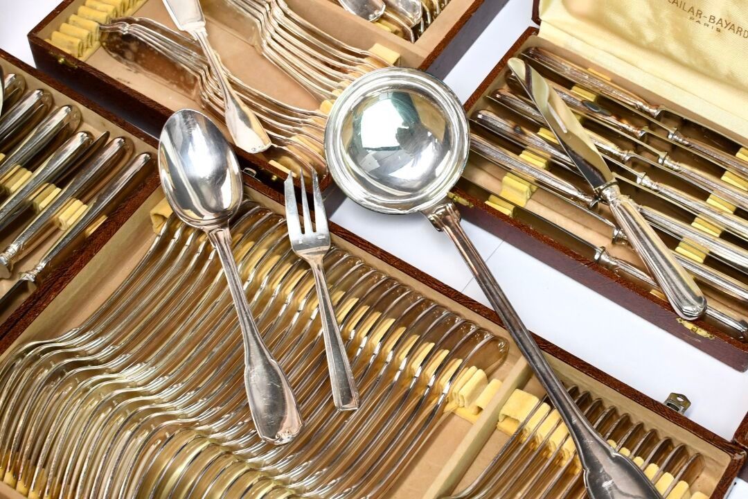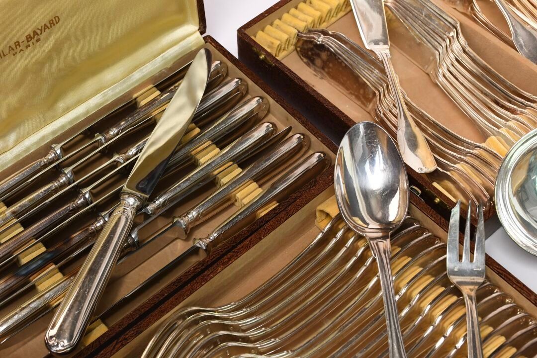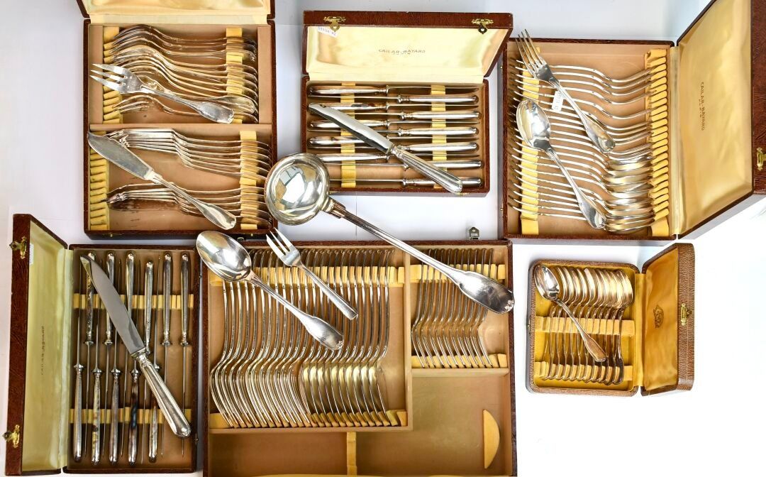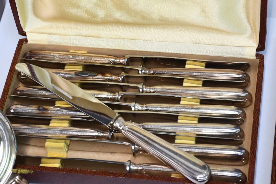 CAILAR BAYARD Set of silver plated knives with net and scrol…
