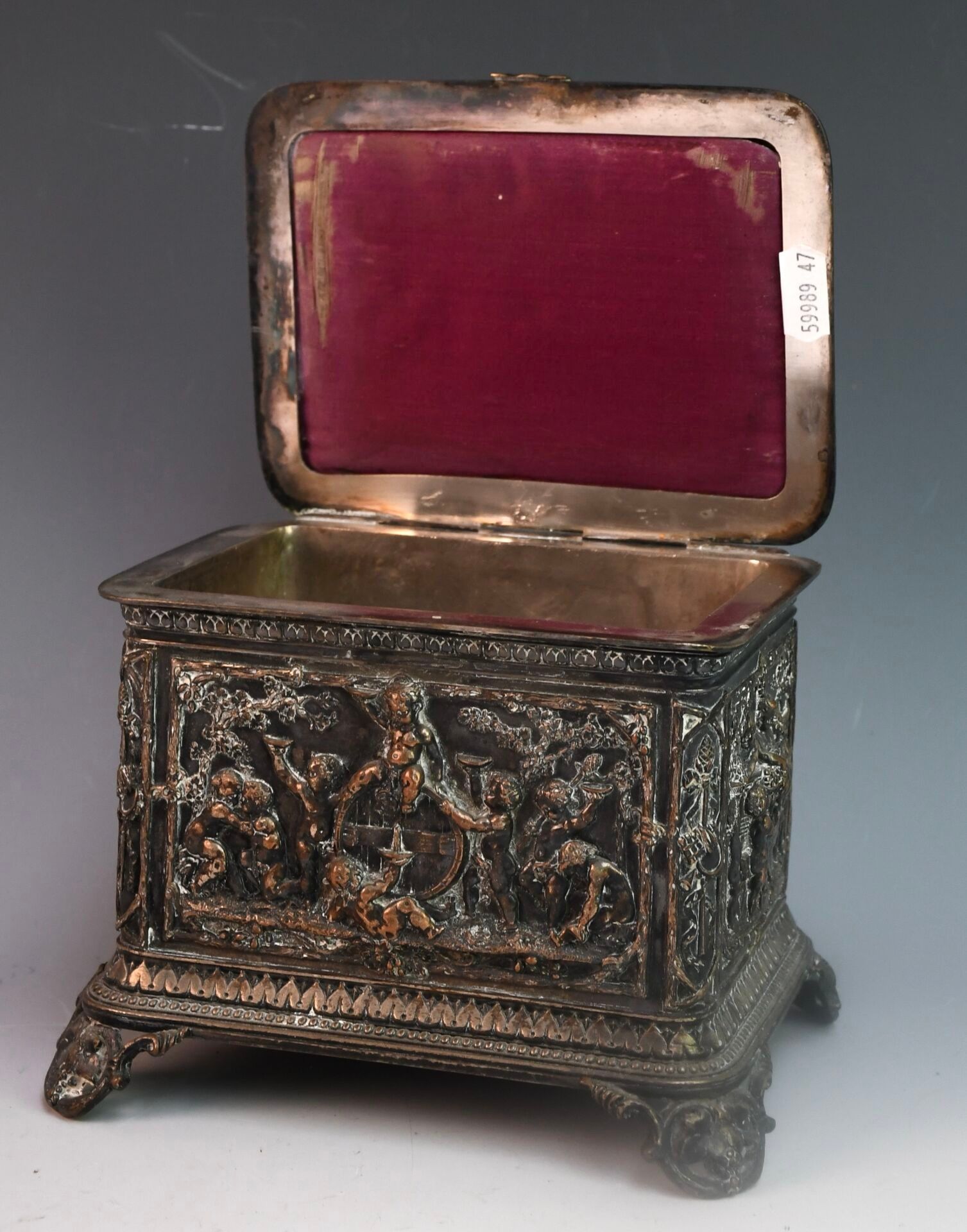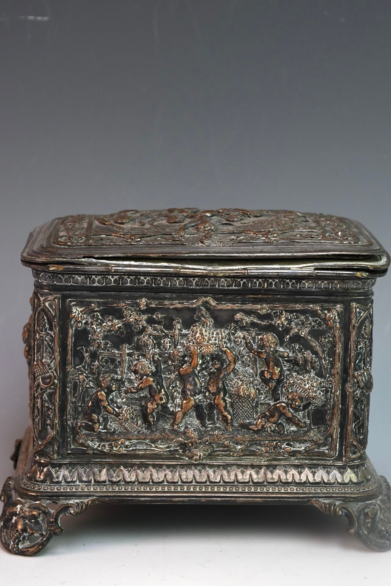 A silver-plated cigar box decorated with bacchanalian scenes…