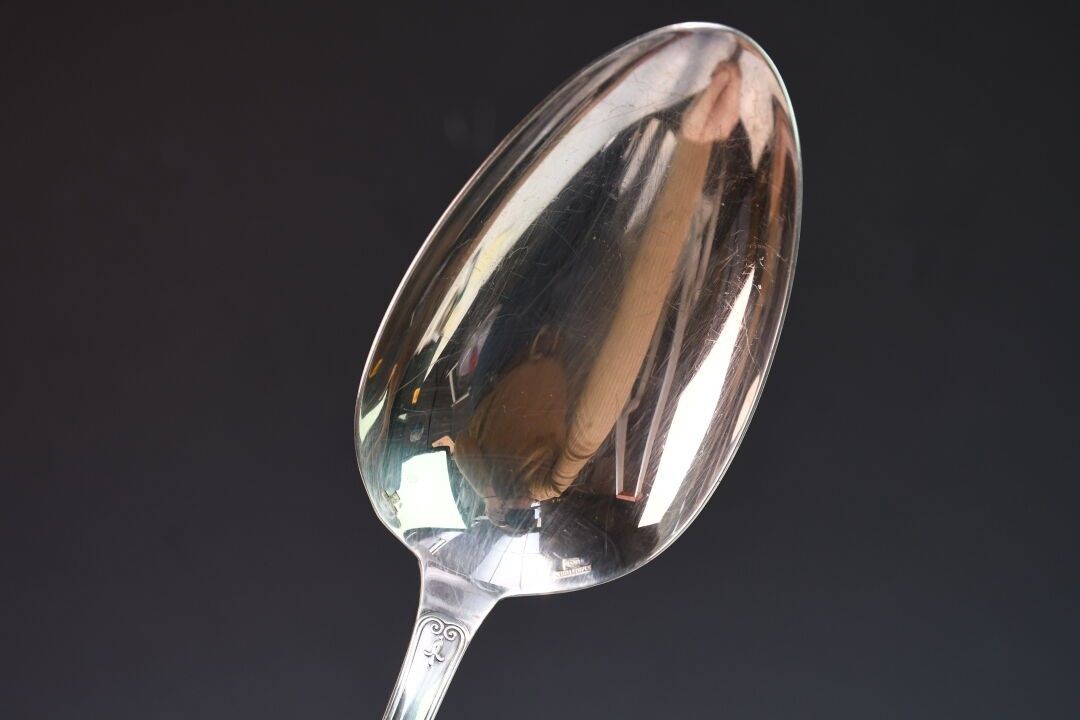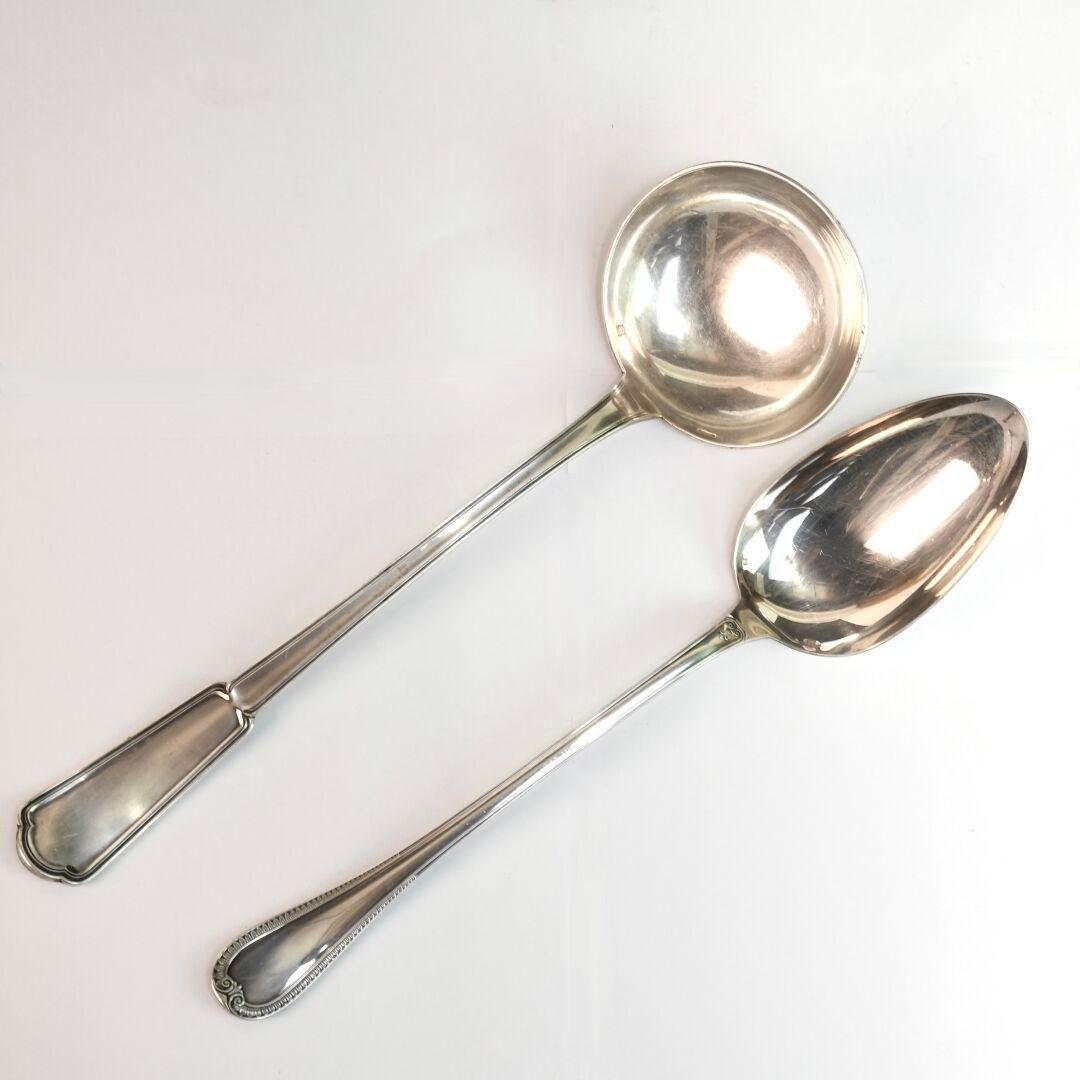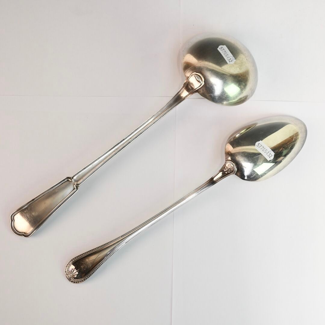 Reunion of a silver-plated ladle with three-lobed spatula and a silver-plated ragout spoon, MALMAISON model.