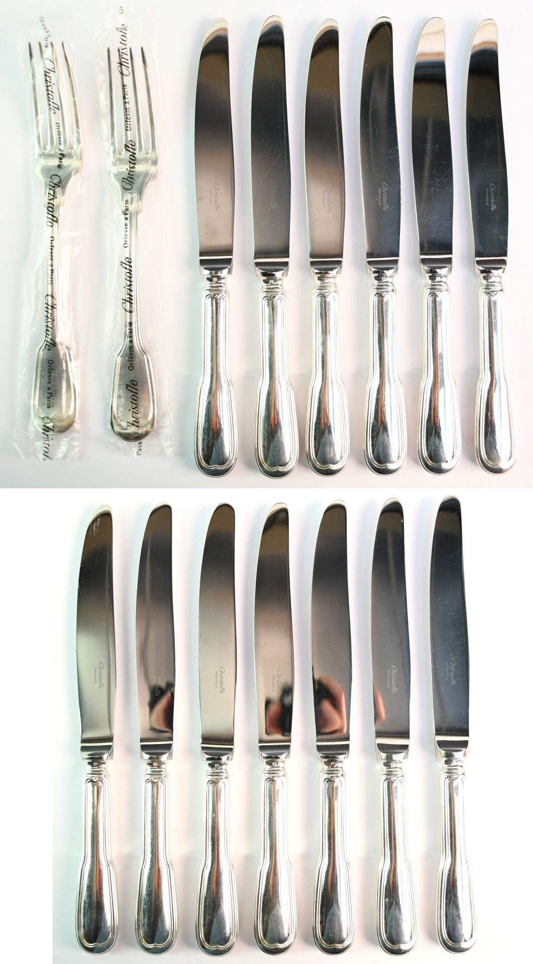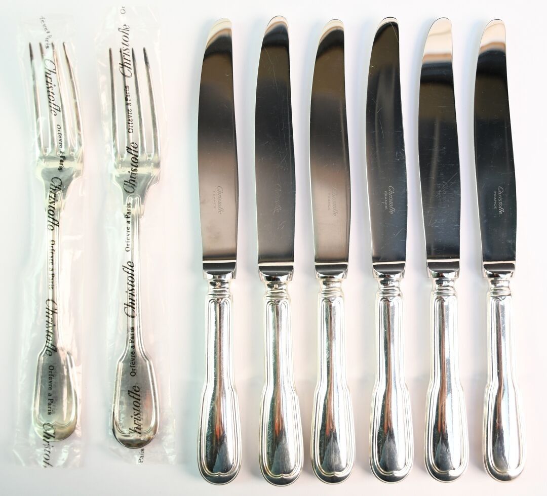 CHRISTOFLE Set of thirteen large silver-plated knives and tw…