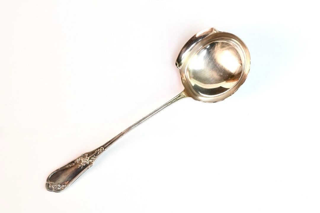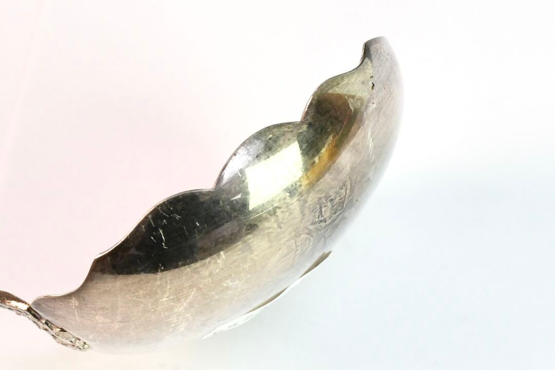 Louis XV style silver plated sauce spoon.