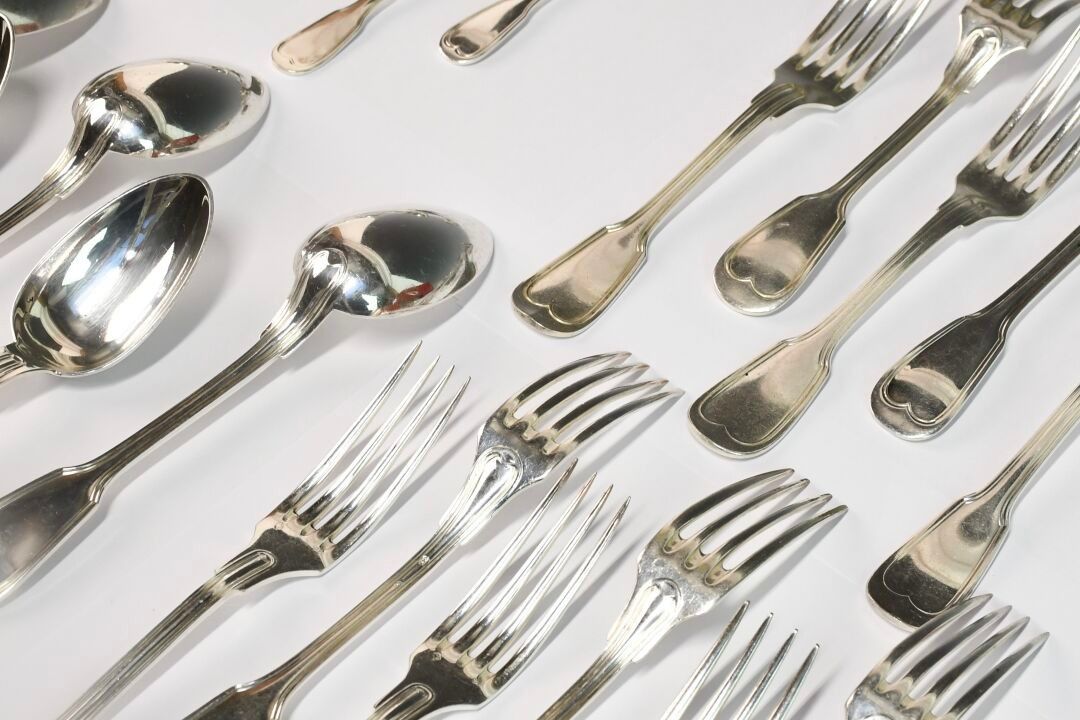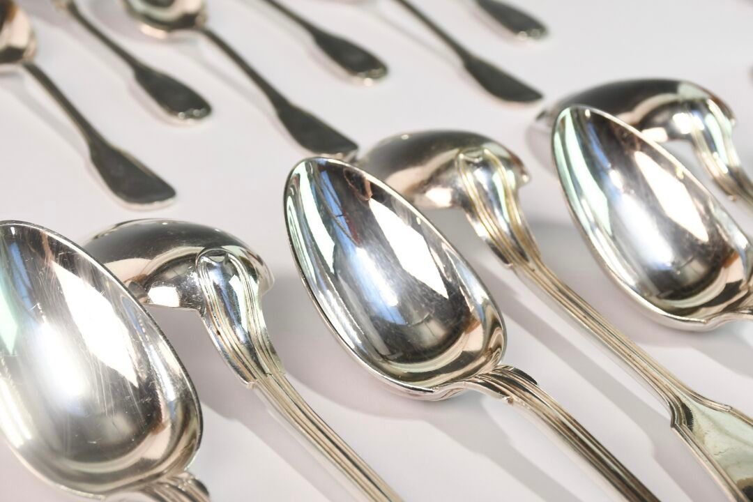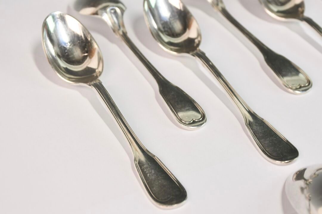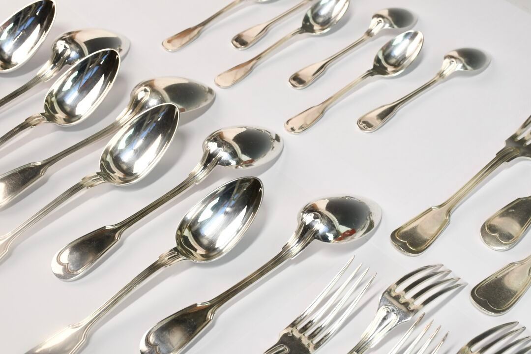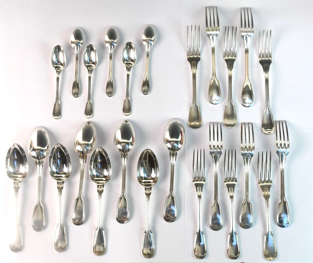 Set of 8 spoons, 11 forks and 6 teaspoons in silvered metal,…