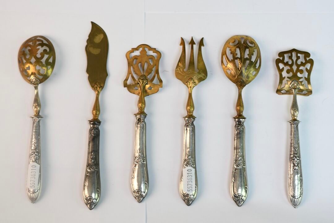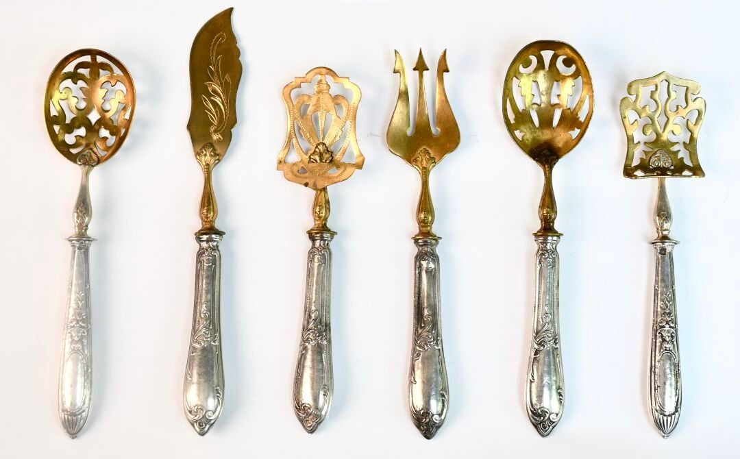 Reunion of a four-piece Louis XV candy set with silver and gilt brass handles.