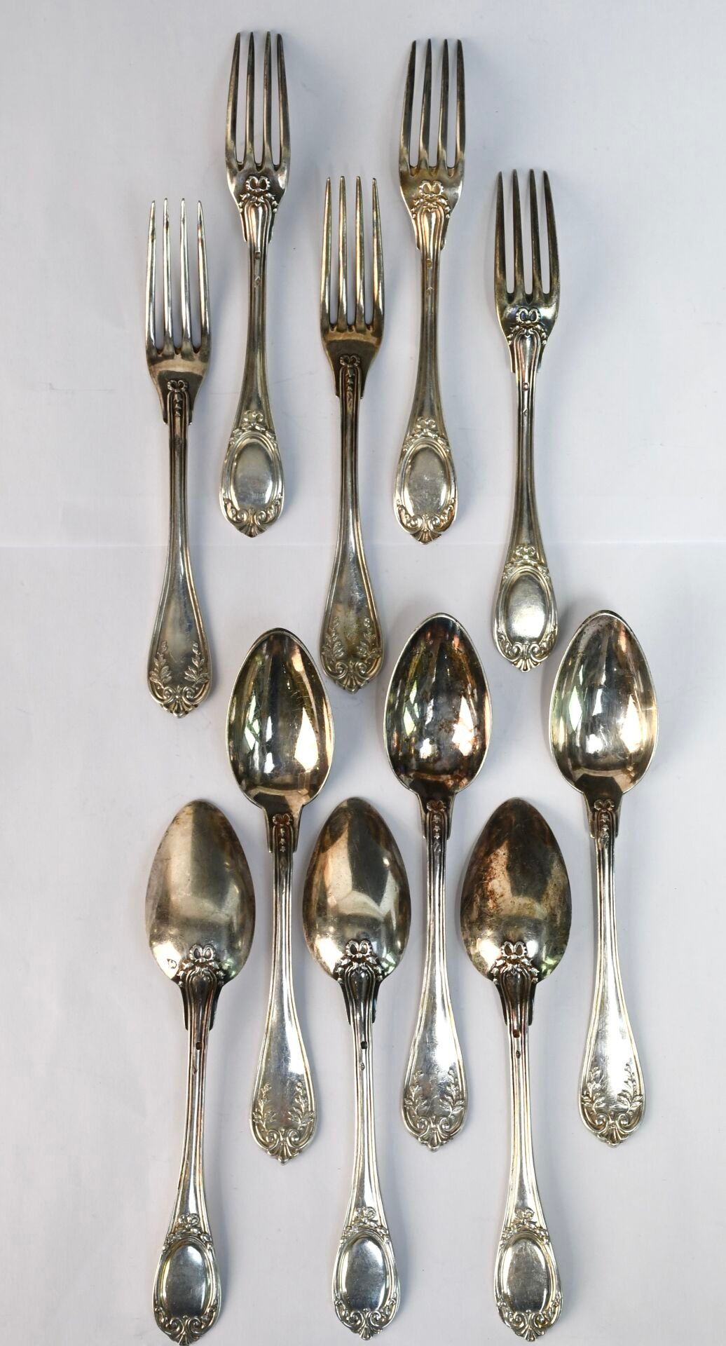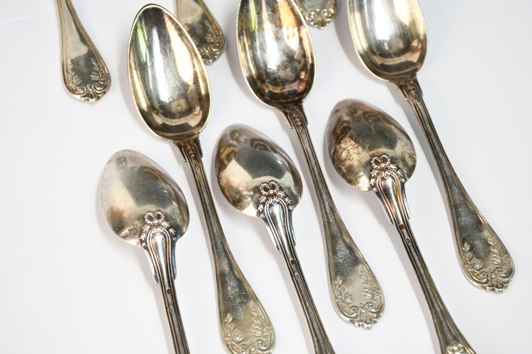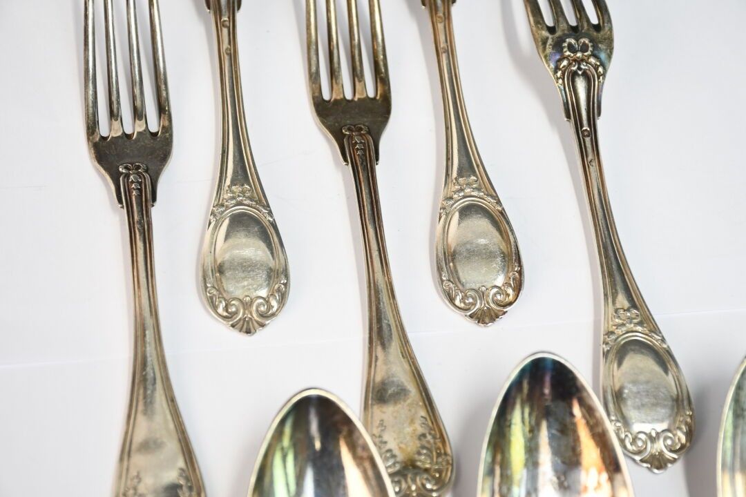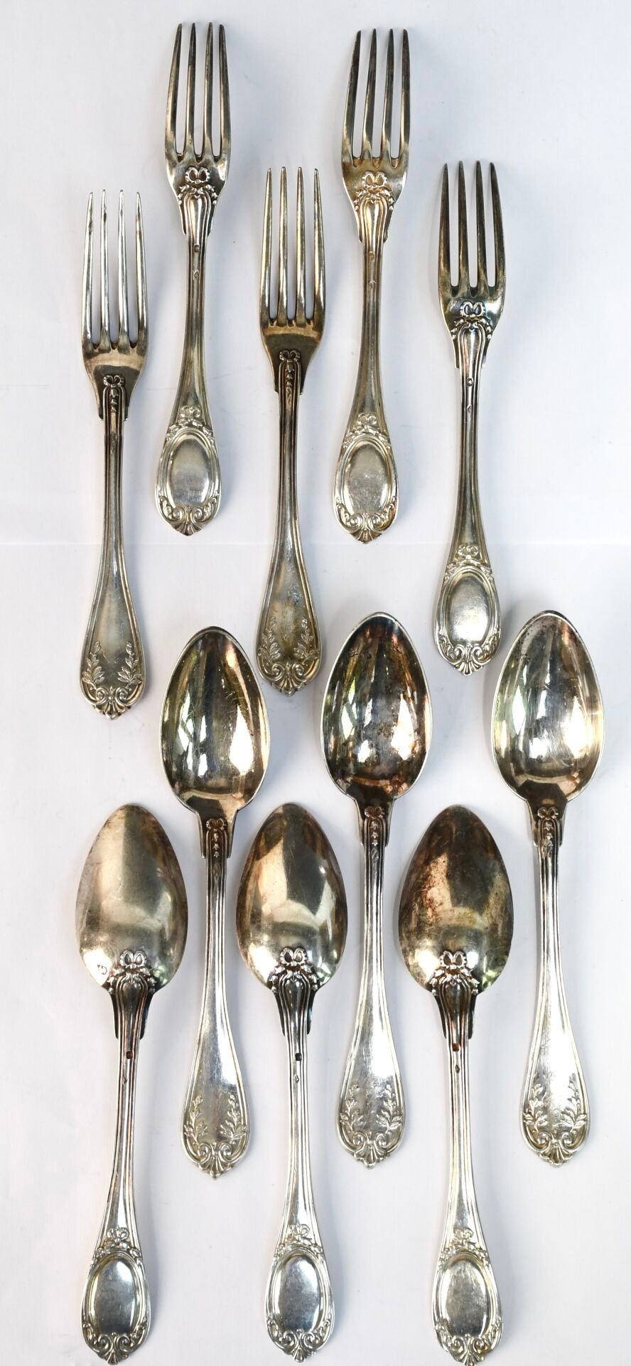 Suite of five forks and six soup spoons in silver 750/1000 with scrolls and foliage design