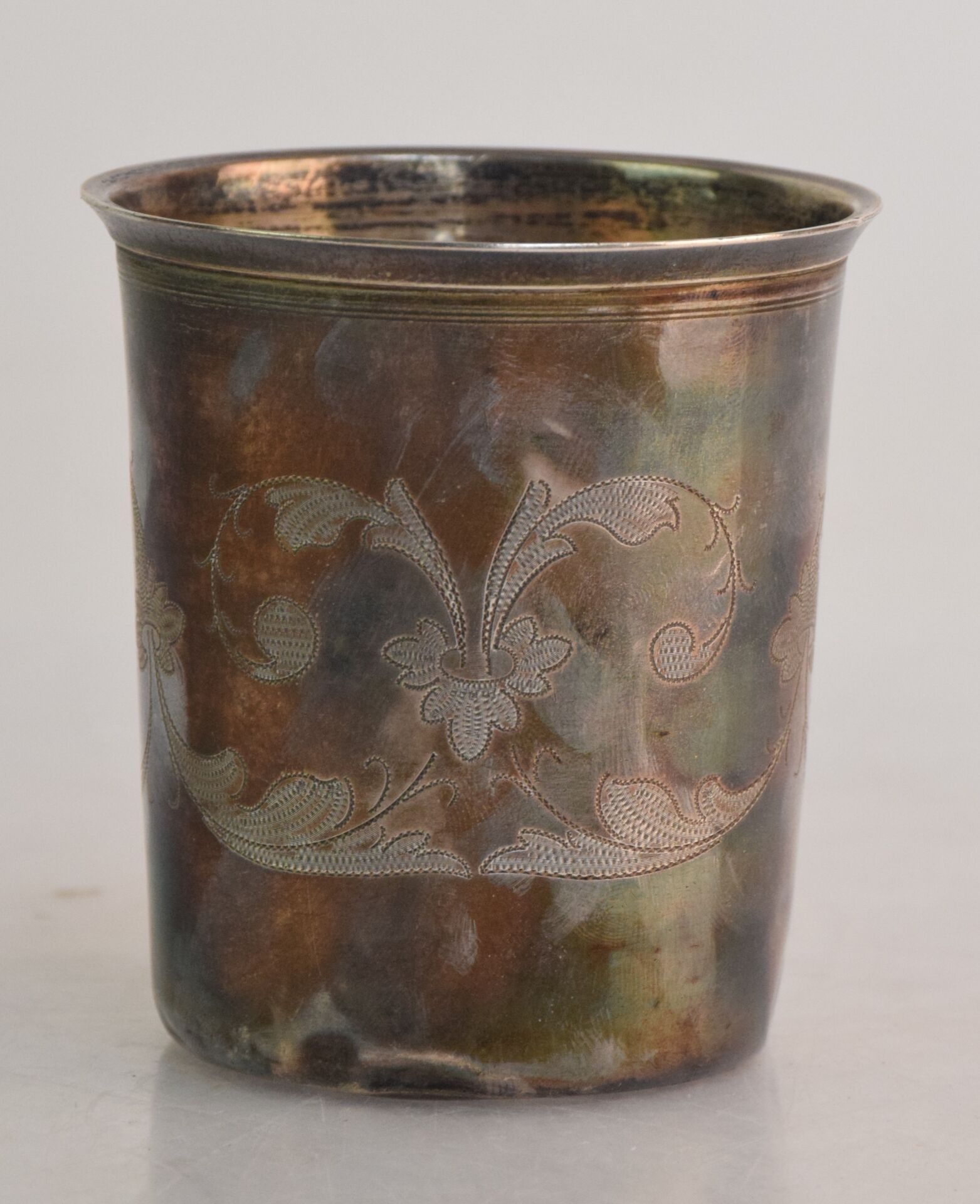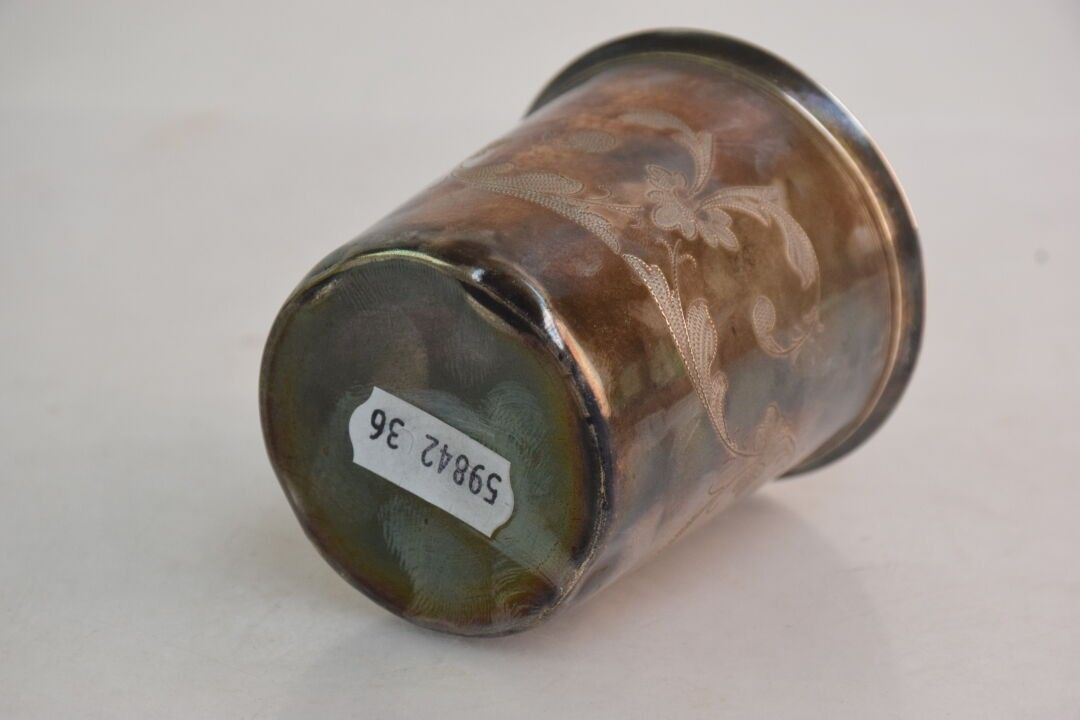 A 950/1000 silver tumbler with finely hammered foliage decor…