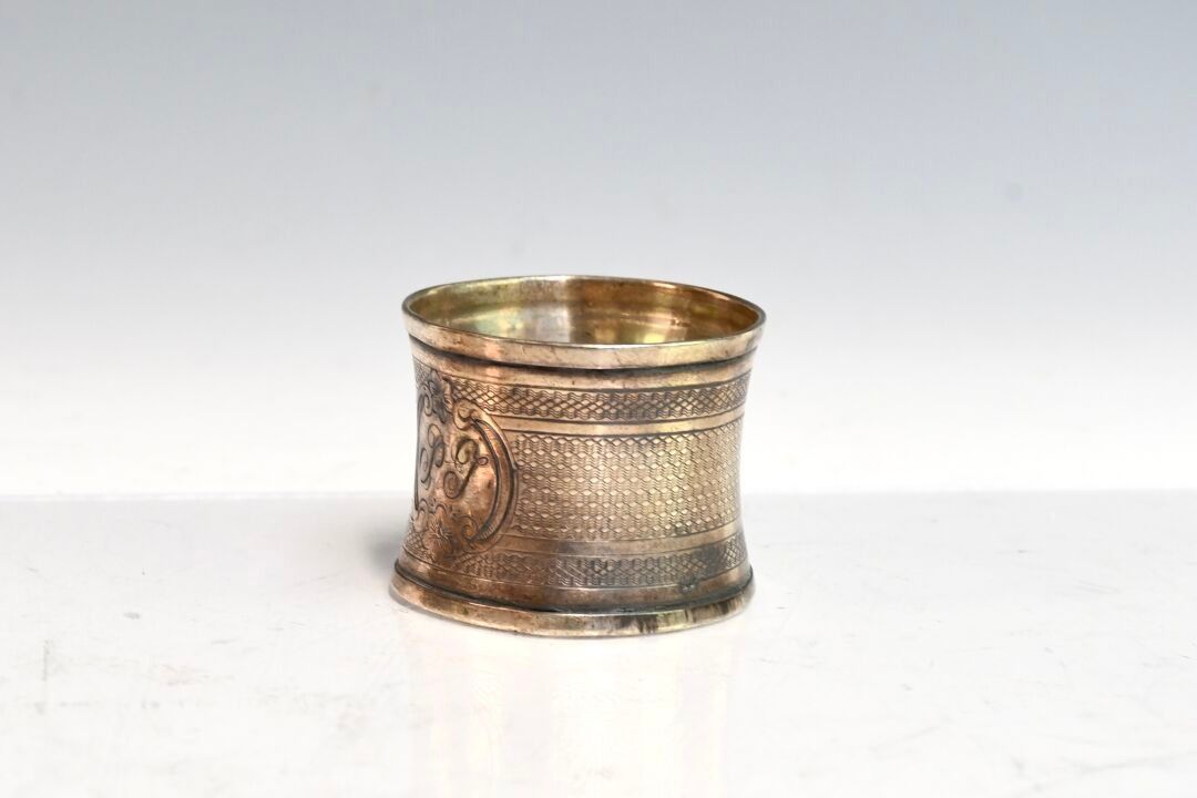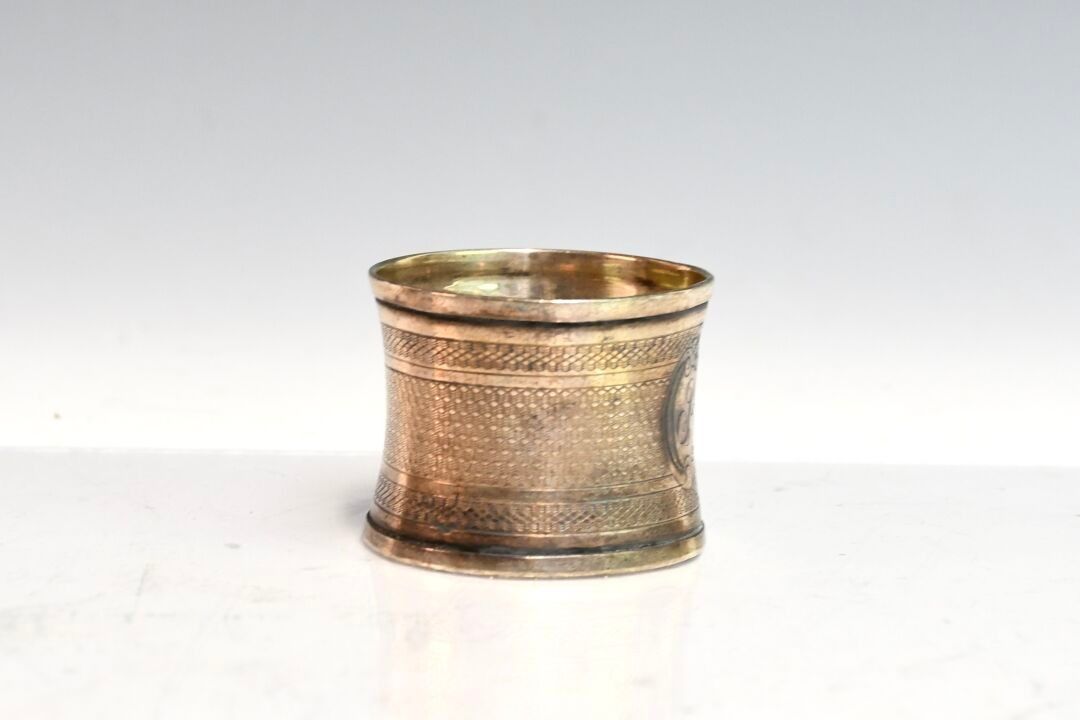 Guilloché silver napkin ring with cartouche numbered n (mino…