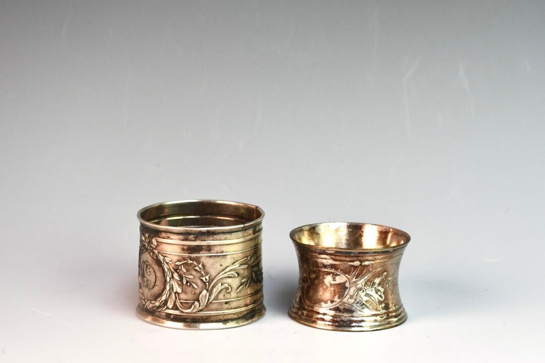 Silver napkin ring with an engraved medallion surrounded by …