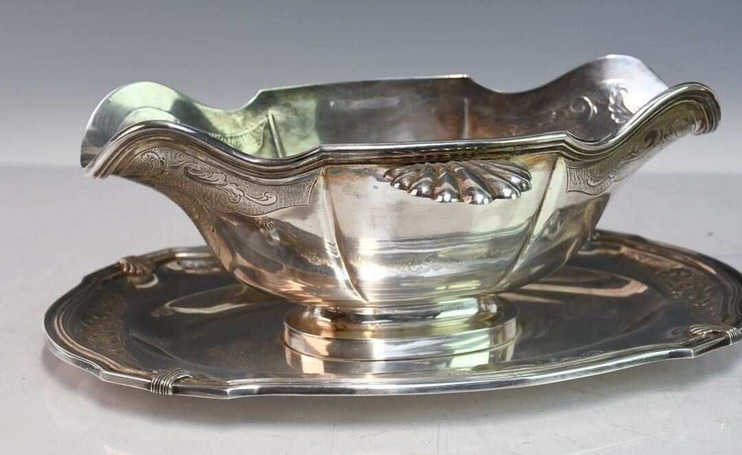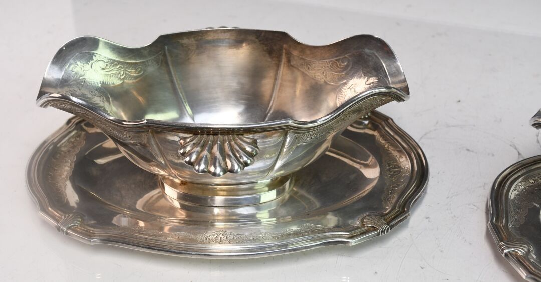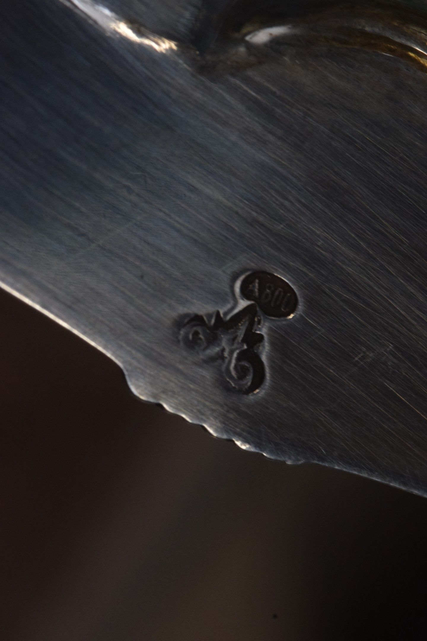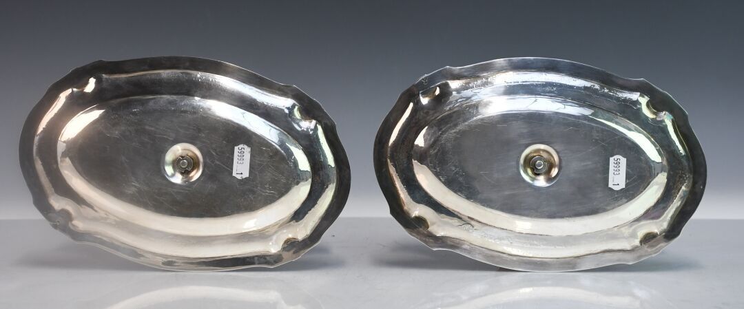 Premium A pair of double saucers in silver 800/1000 with hammered fo…