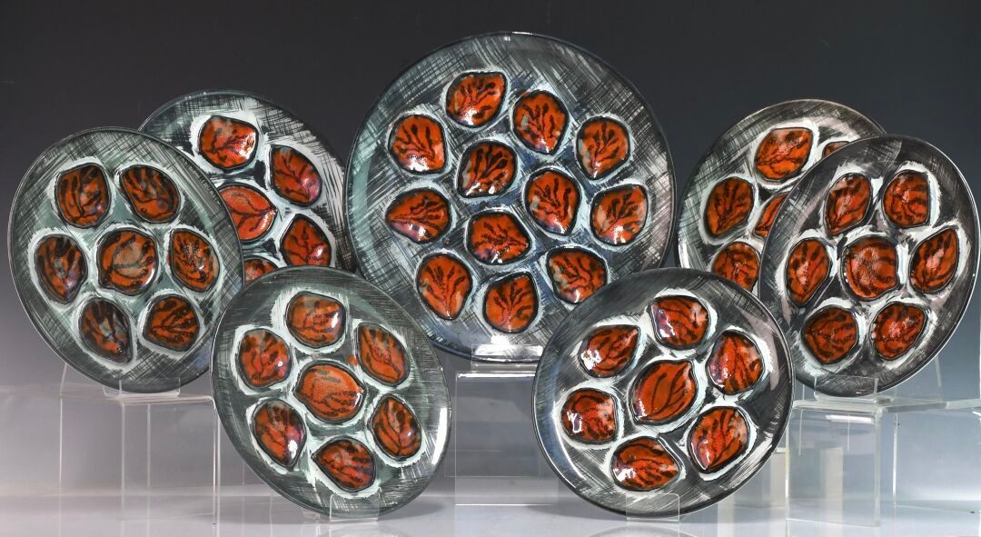 PORNIC Oyster service in glazed earthenware comprising a dis…