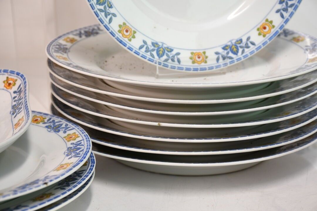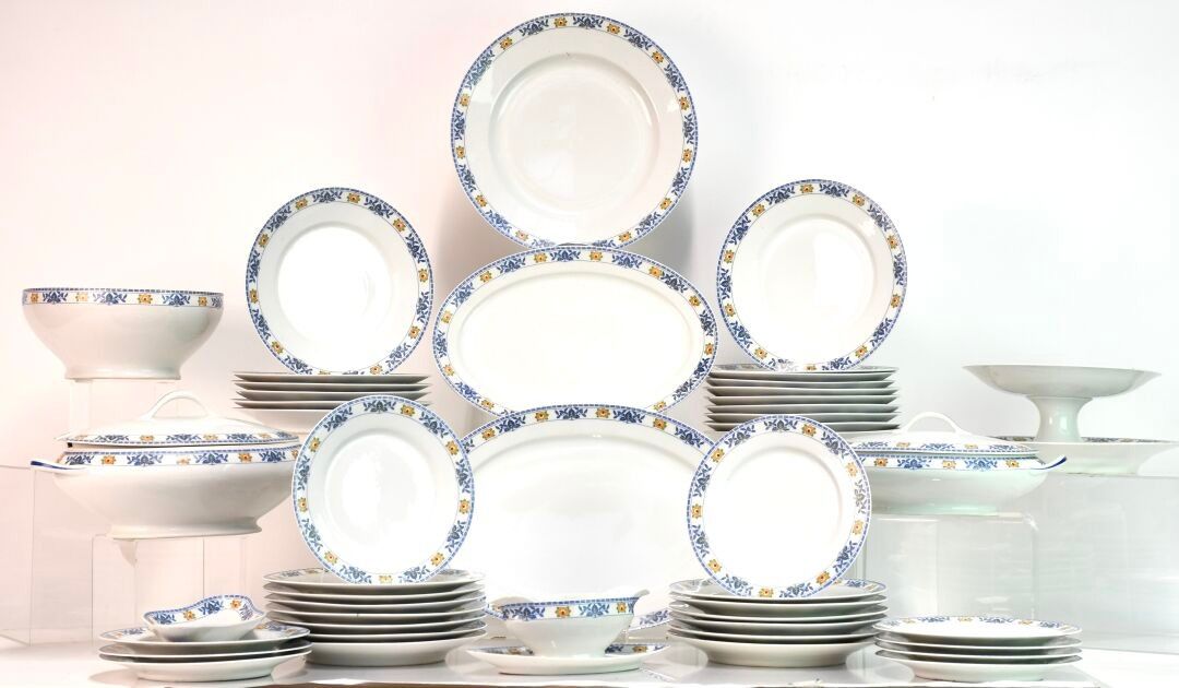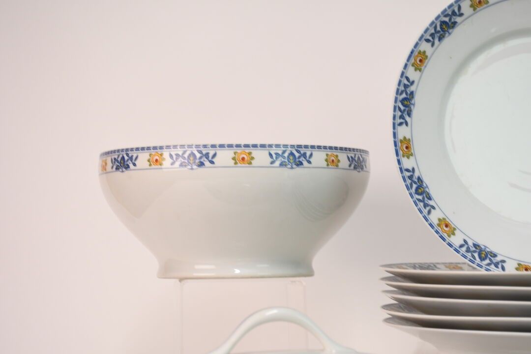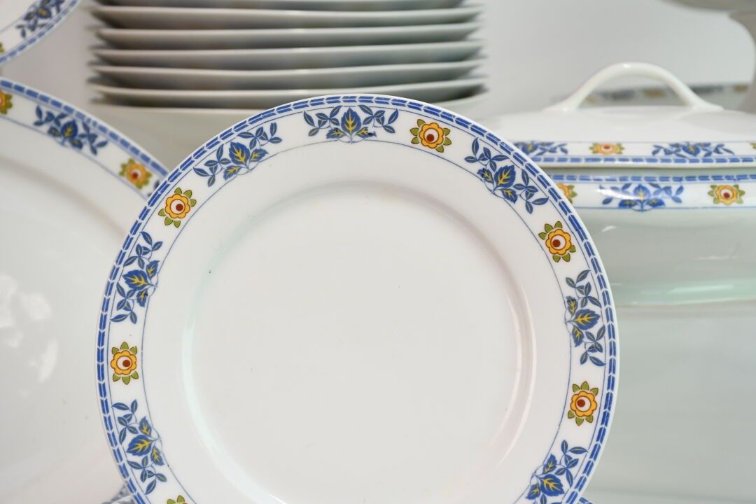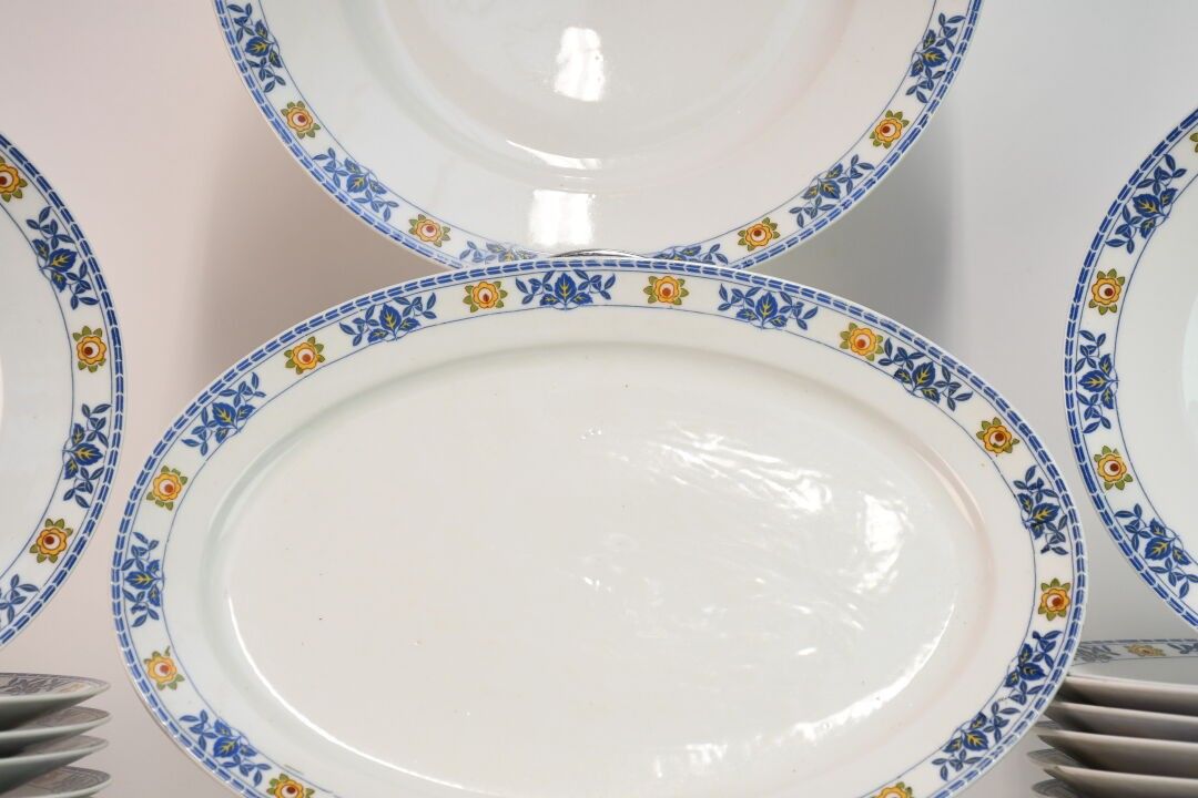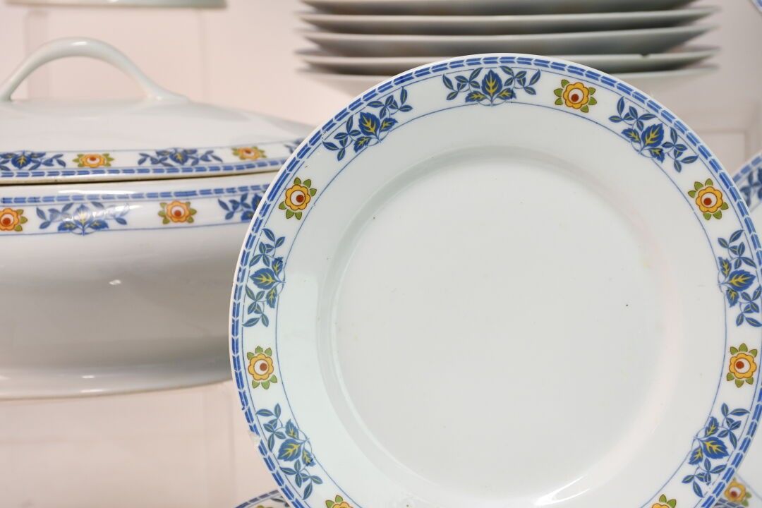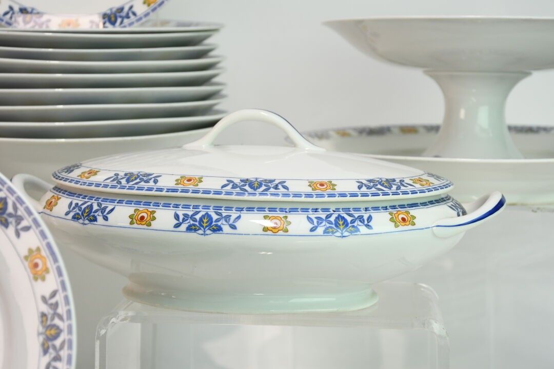 LIMOGES White enamelled porcelain service with leaf and flow…