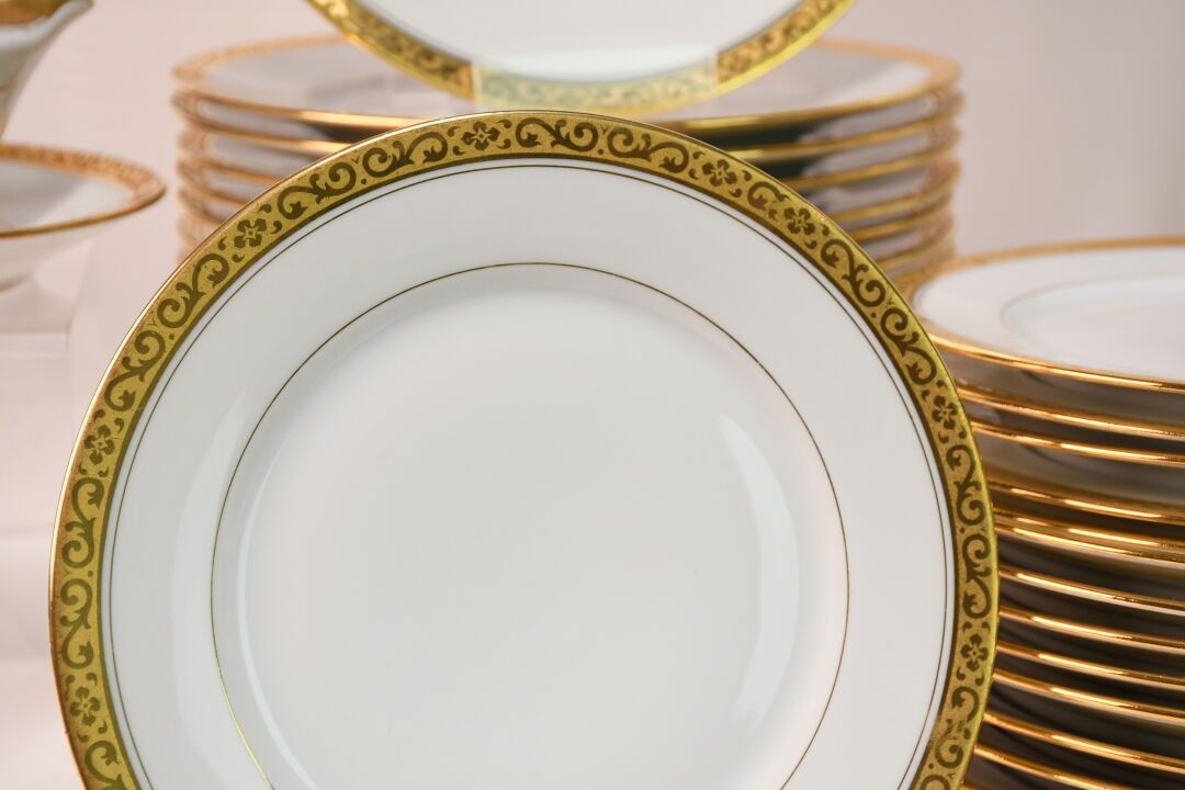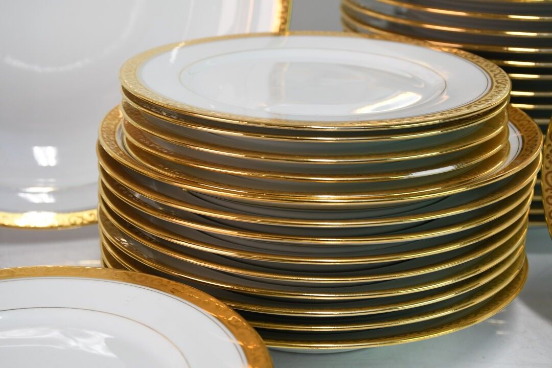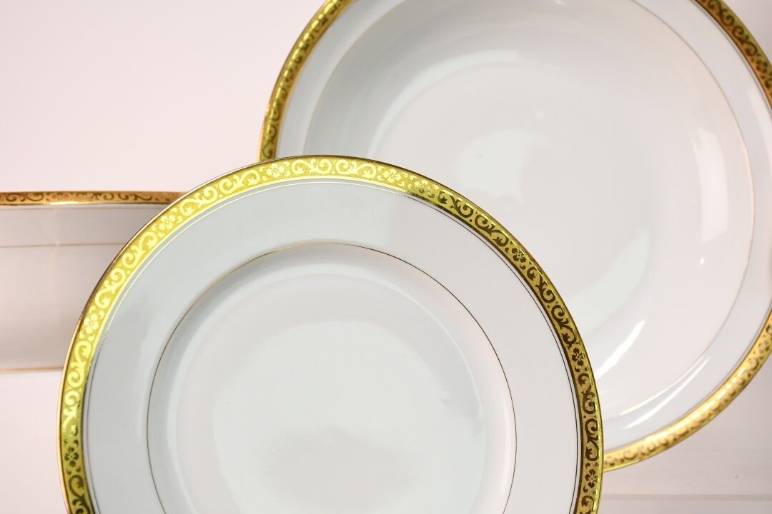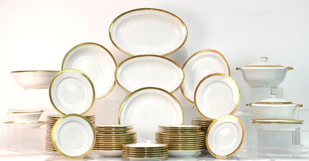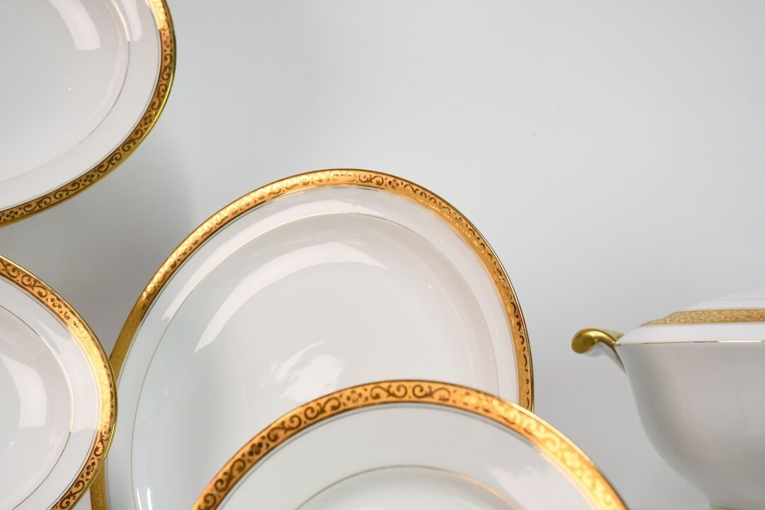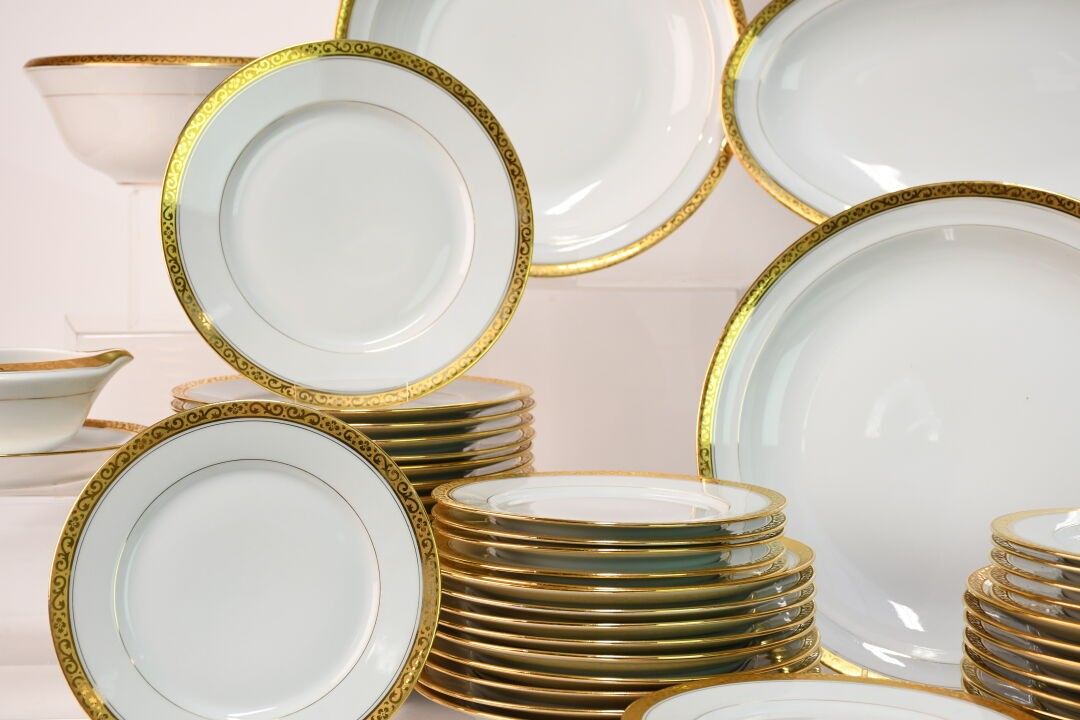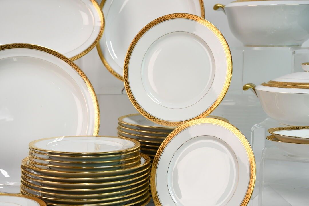 LUCE in LIMOGES White and gilt enamelled porcelain service c…