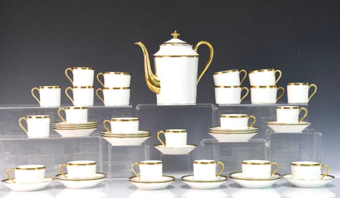 LEGRAND & Cie in LIMOGES White and gilt enamelled porcelain …
