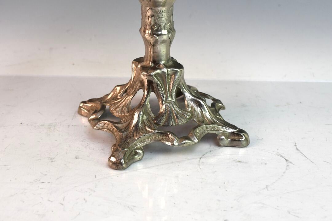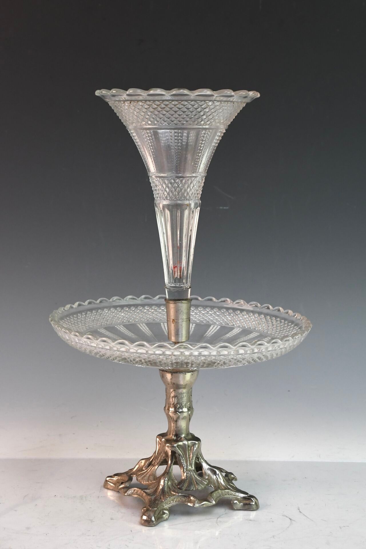A cut-crystal and silver-plated metal dinner service forming a vase at the top.