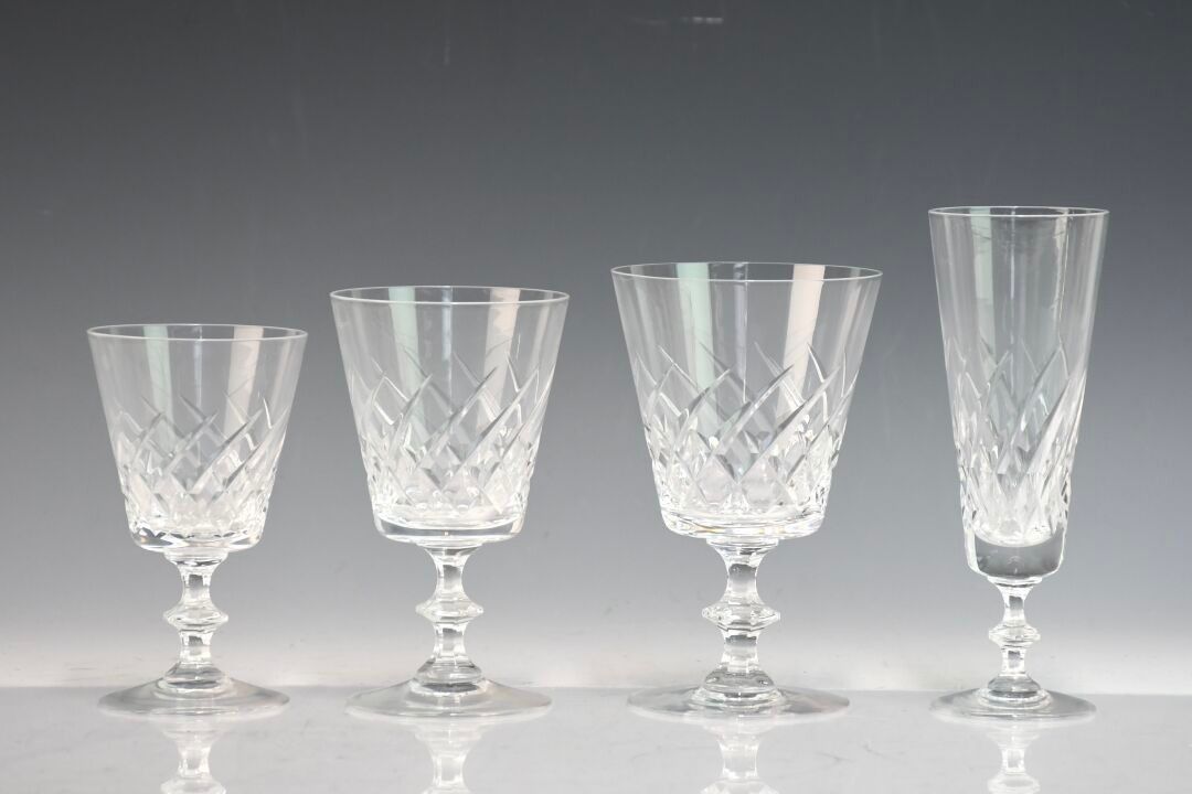 Some glasses are marked "Cristal de Vannes" or "Cristal de Sèvres", others are unmarked.