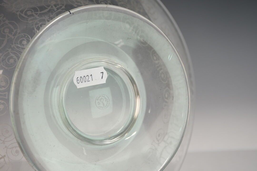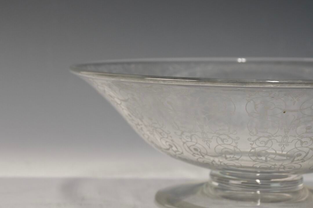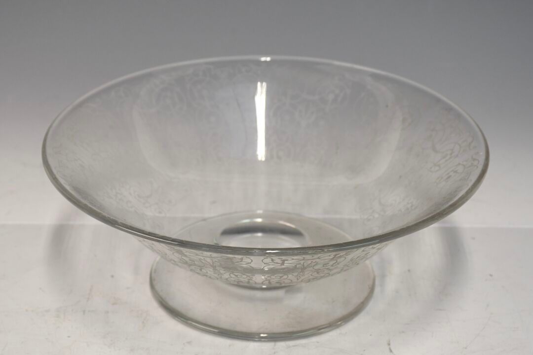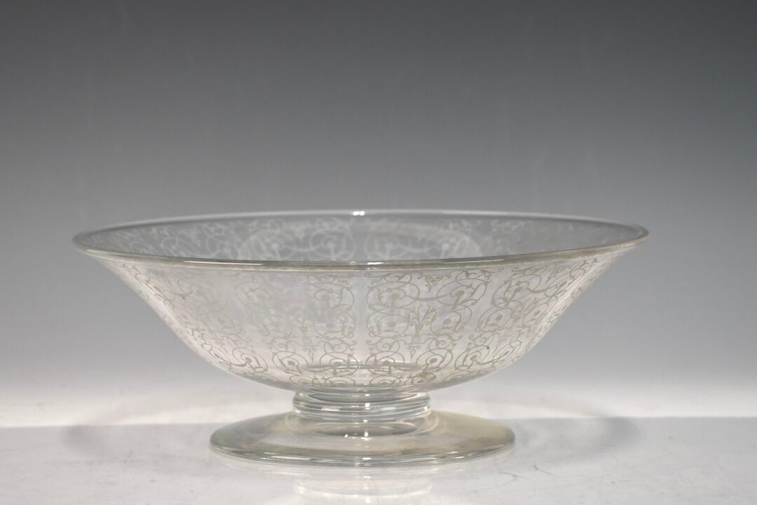 Crystal fruit bowl with engraved decoration of foliage and lambrequins.
