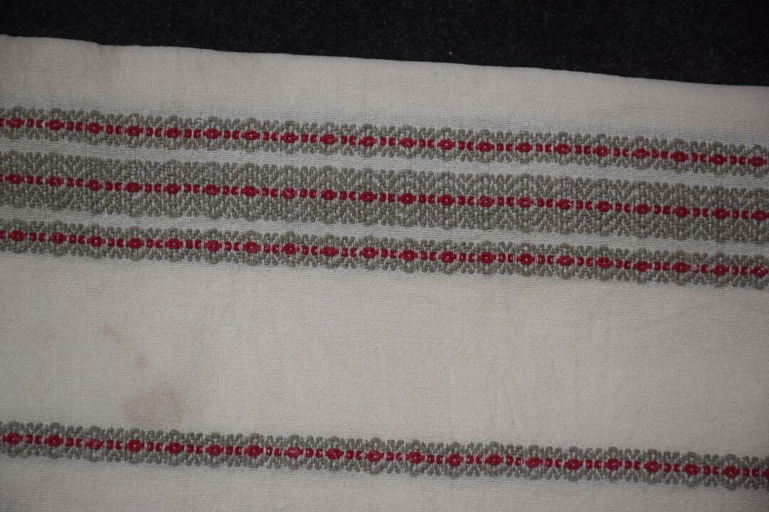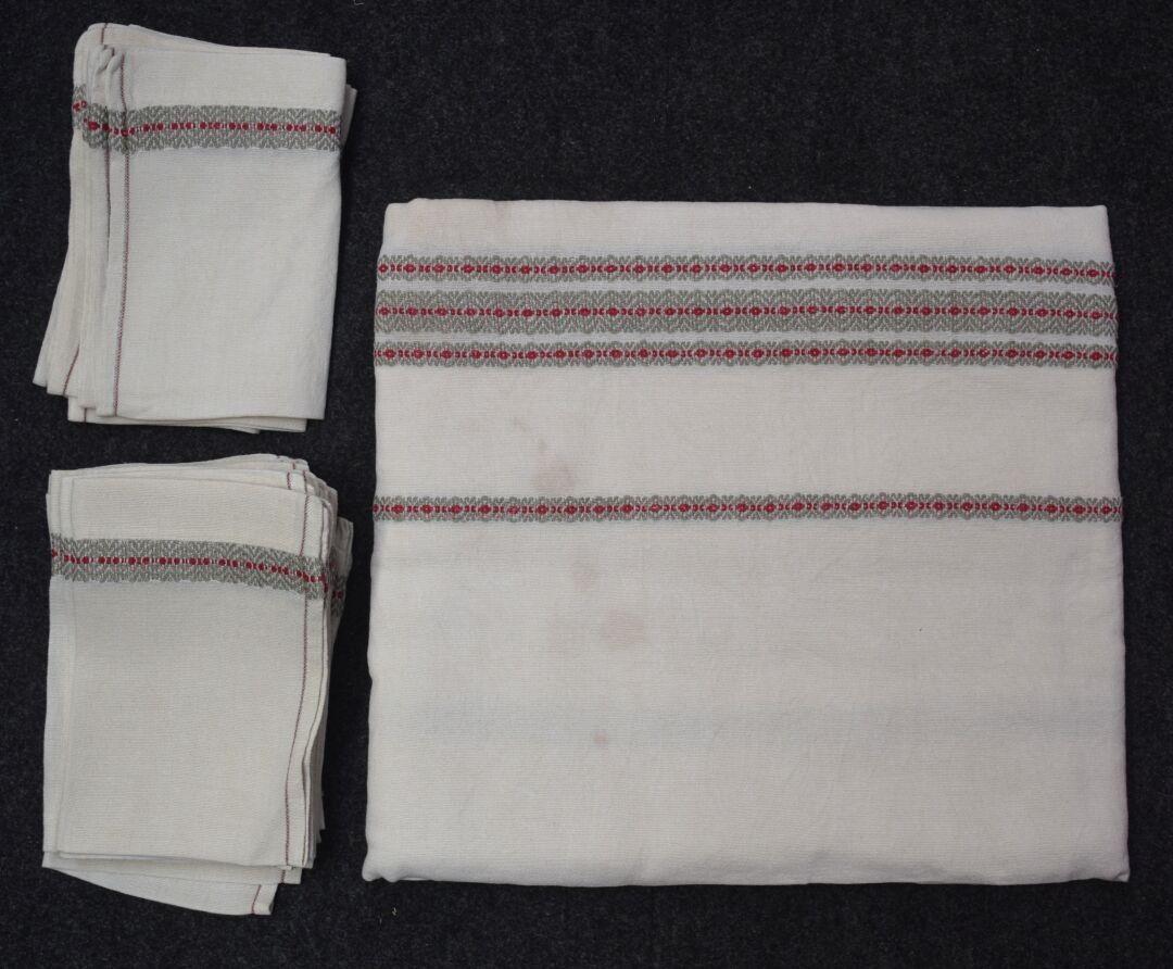 Embroidered linen place mat including tablecloth and twelve napkins (stains)