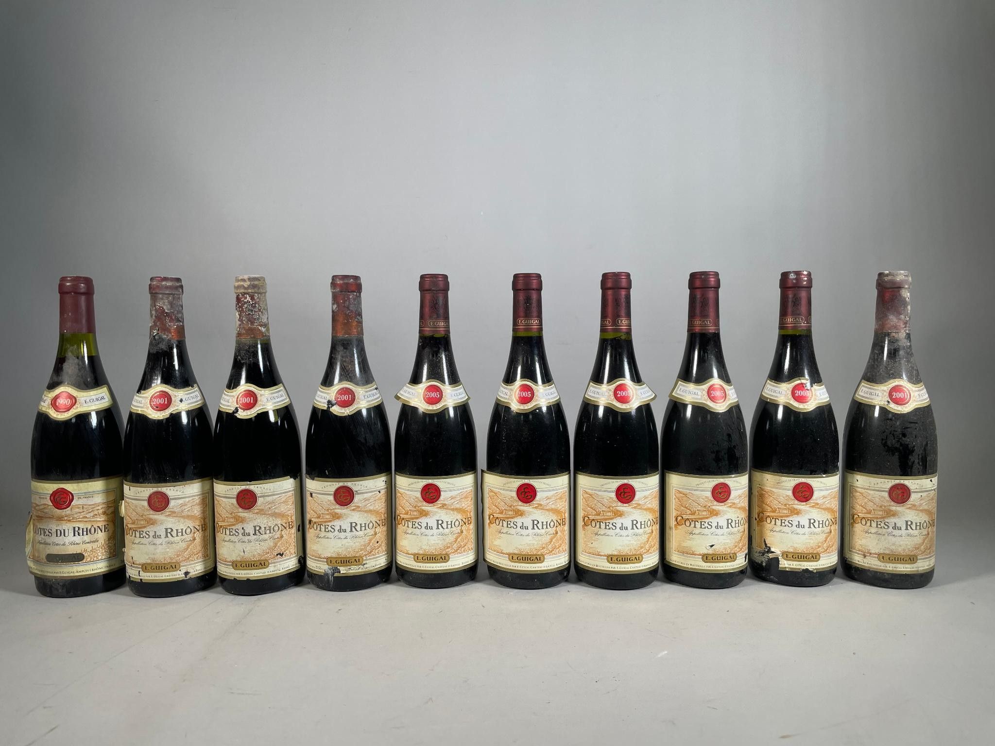 10 btlles Cotes du Rhone, Guigal, 4 from 2001 and 1 from 1990 and 5 from 2005. ELD