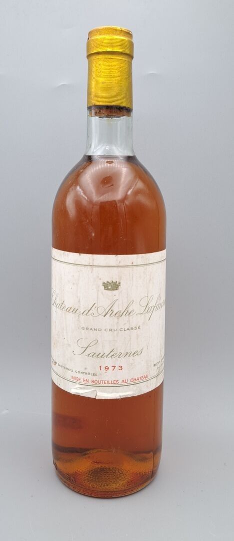 BORDEAUX - 1 bottle, Sauternes, Château d'Arche Lafaurie, 2nd Grand Cru Classé, 1973. Slightly engaged cork. TLB (+). Curved capsule, slightly dirty at the top with a few scratches. Label slightly dirty and damaged in its lower part.