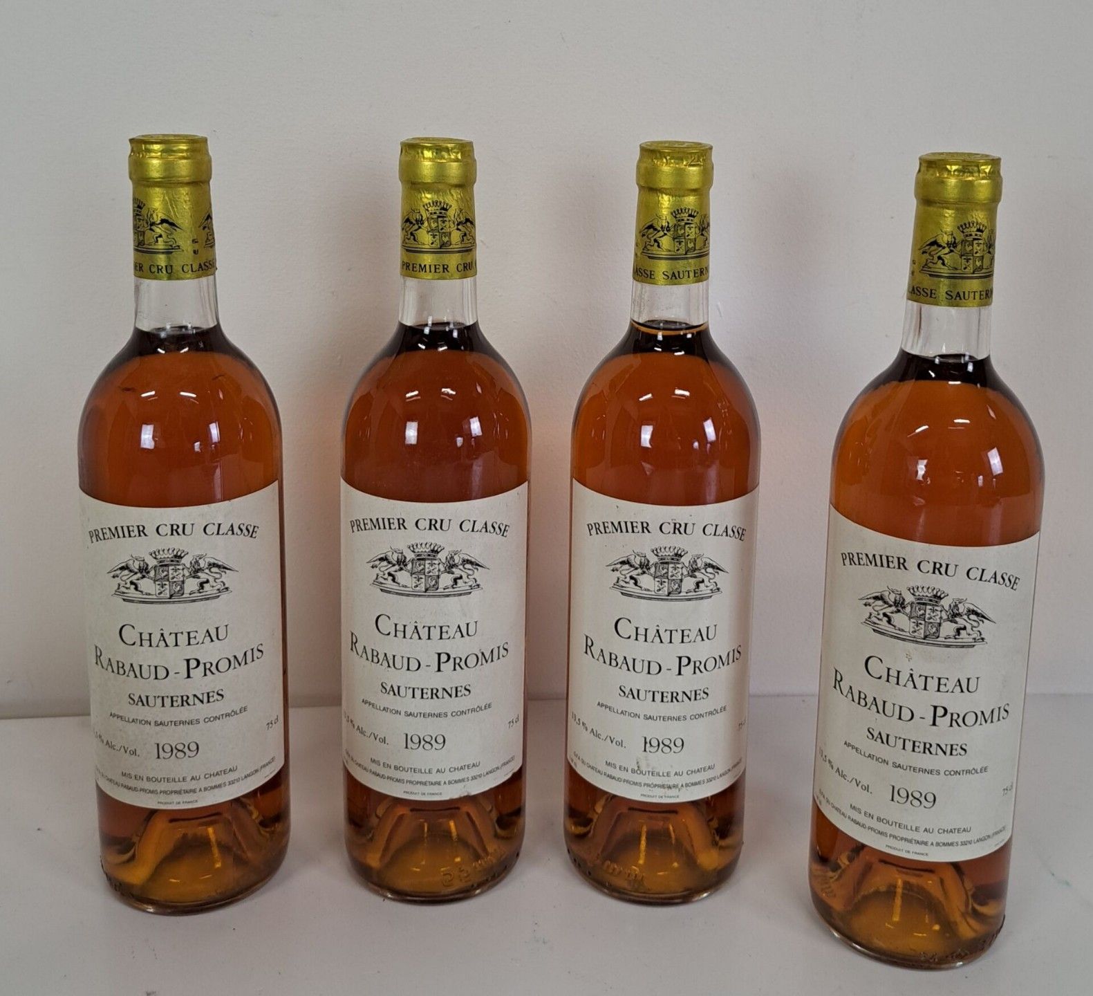 BORDEAUX - 4 bottles, Sauternes, Château Rabaud-Promis, 1er Grand Cru Classé, 1989. 4 BG. Labels with traces, one of which is also slightly damaged.