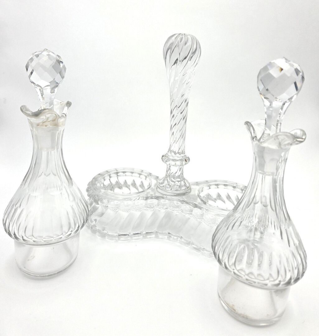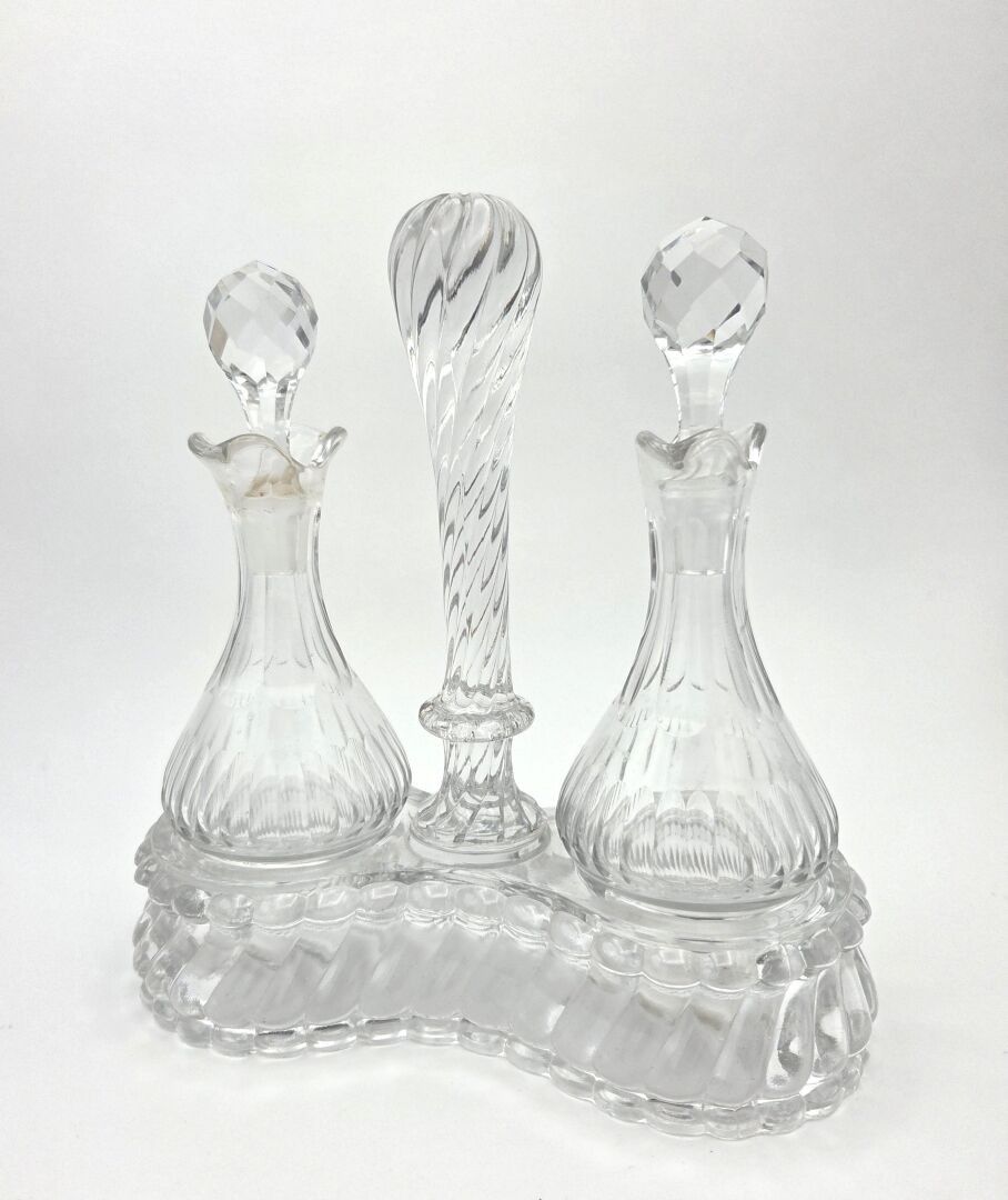 BACCARAT. Pressed moulded oil and vinegar cruet decorated wi…