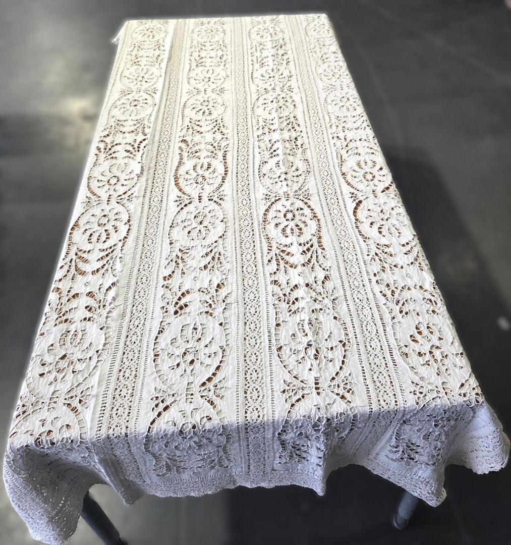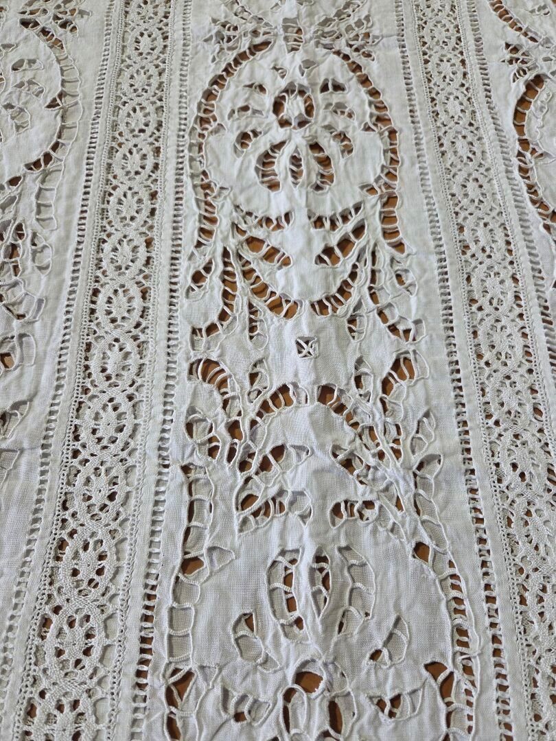 White cotton tablecloth with embroidery and cotton lace, 220…