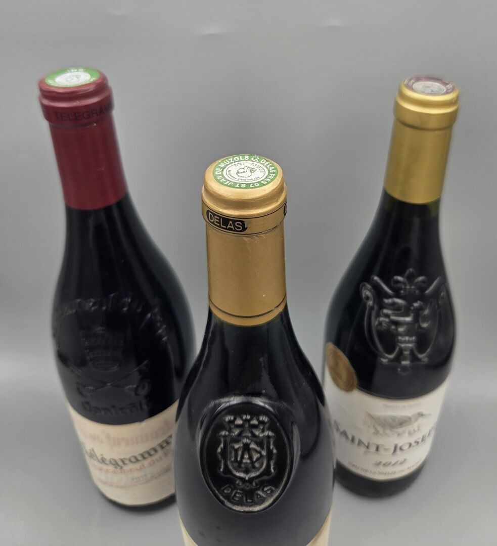 1 bottle, Saint-Joseph, Cellier Saint-Jean, 2012. Slightly curved capsule. Slightly dirty label. Back label slightly dirty with traces of moisture.