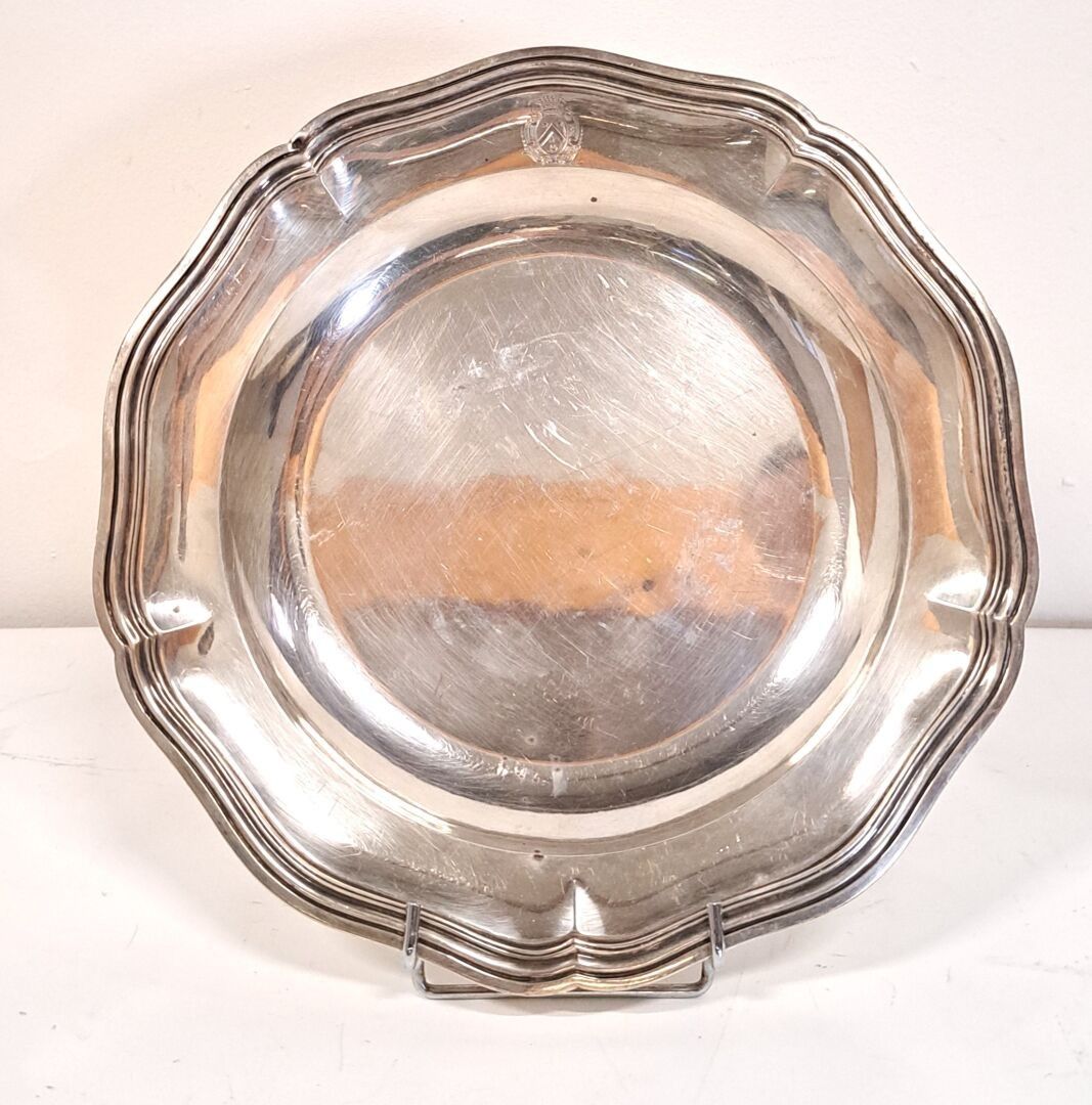 Solid silver dish with scalloped edges, Minerve hallmark, P: 866 g - Diameter: 30 cm
