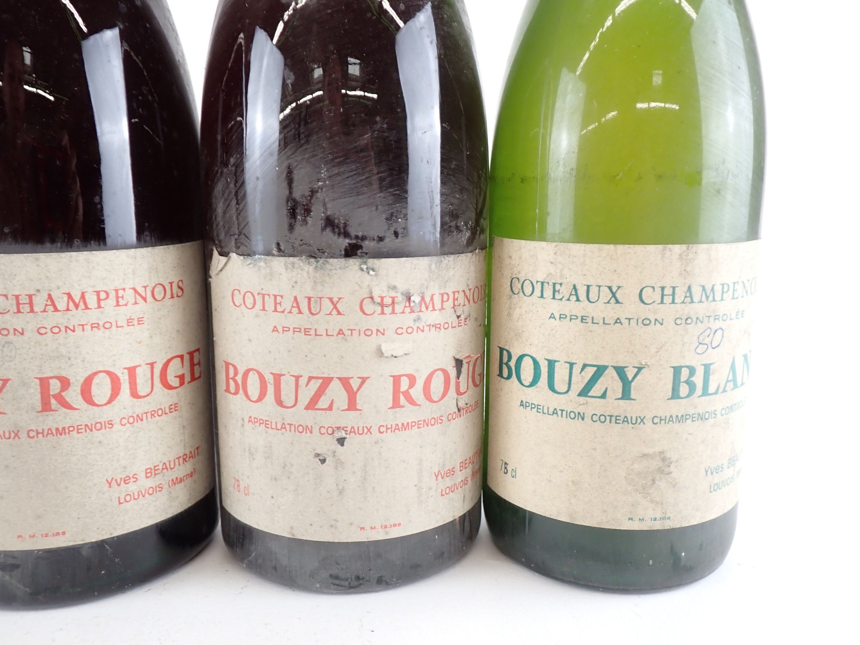 1 bottle, Coteaux Champenois 'Bouzy Blanc', Yves Beautrait. Slightly dirty label. Dirty label.