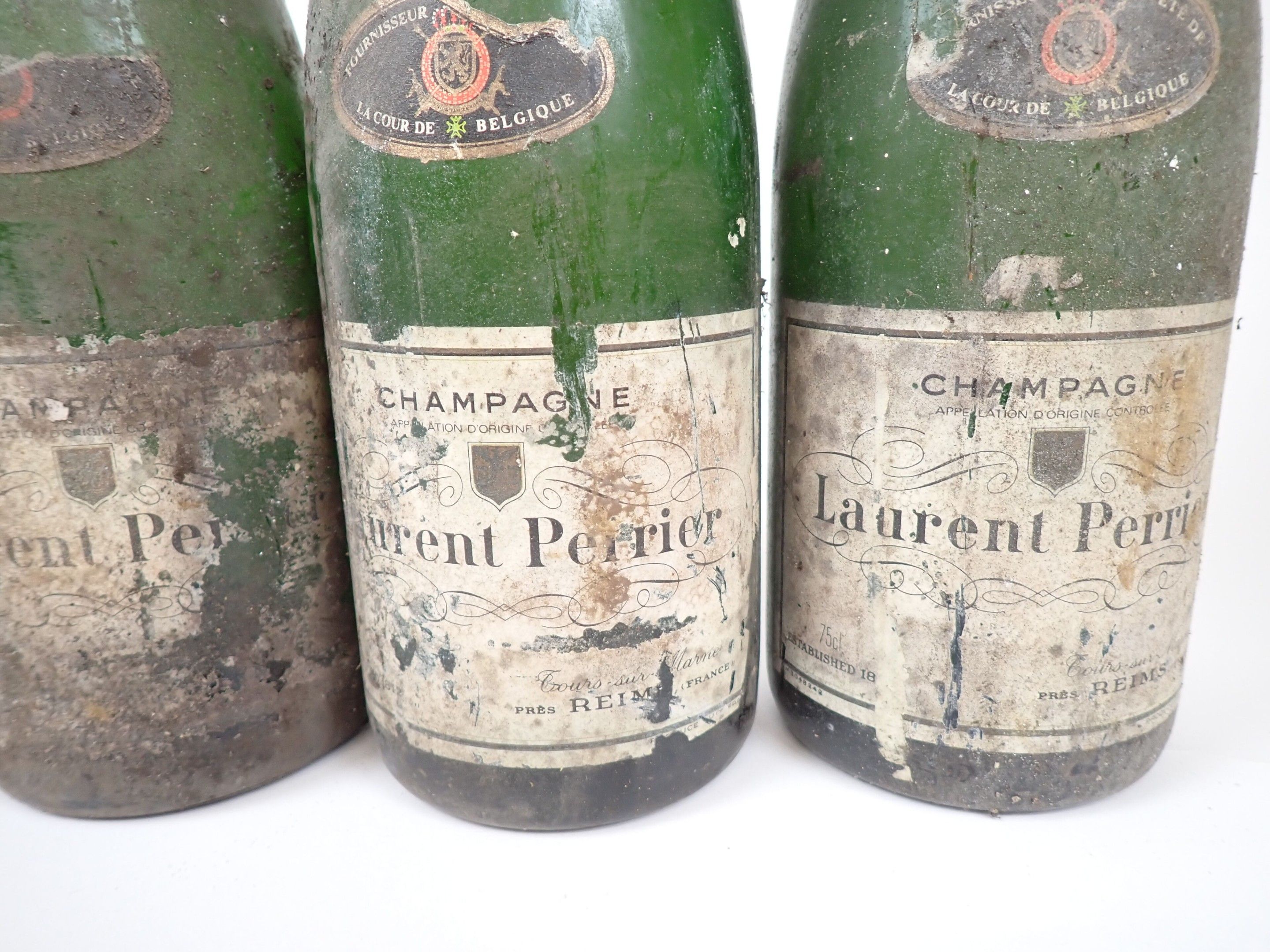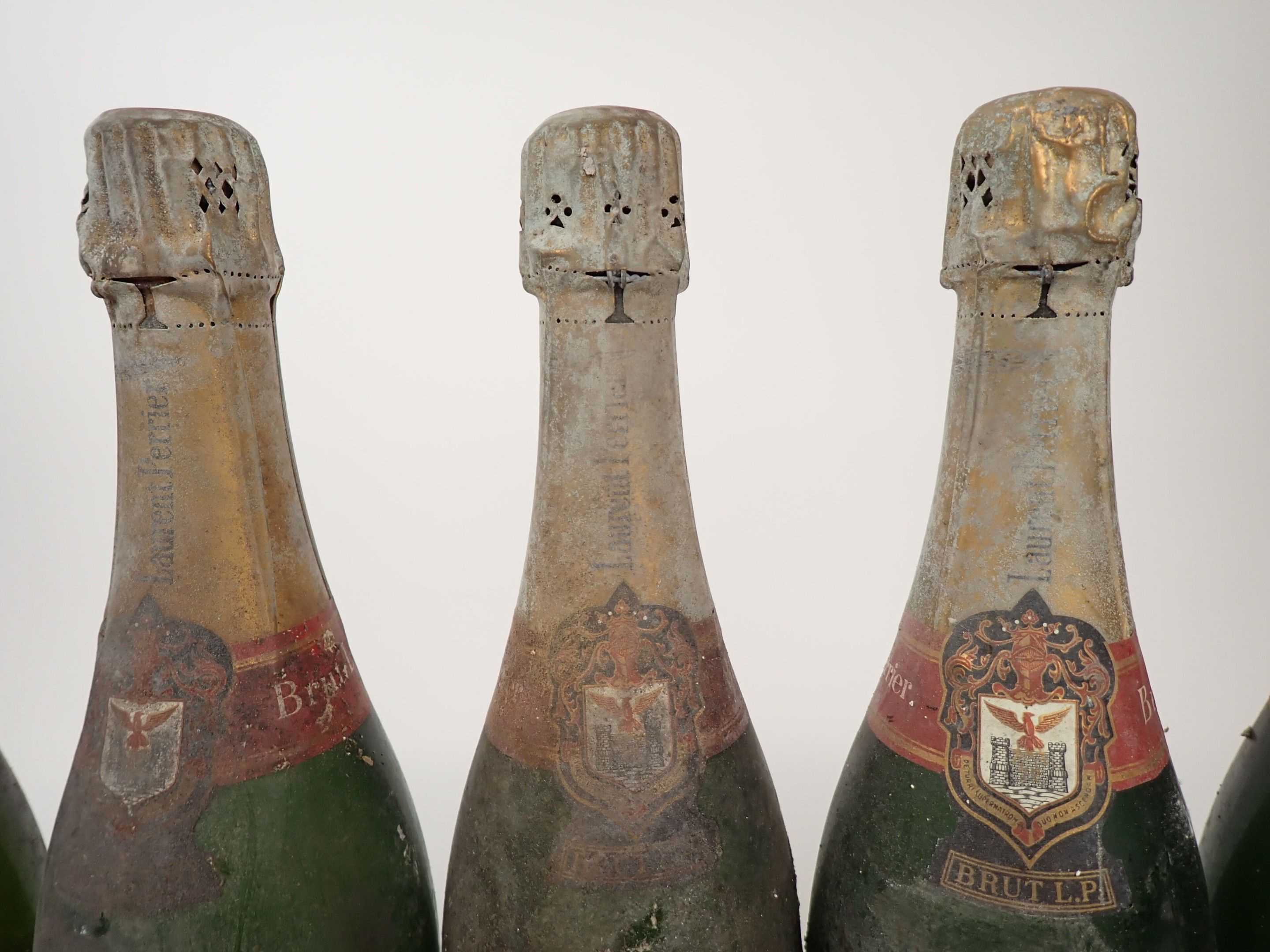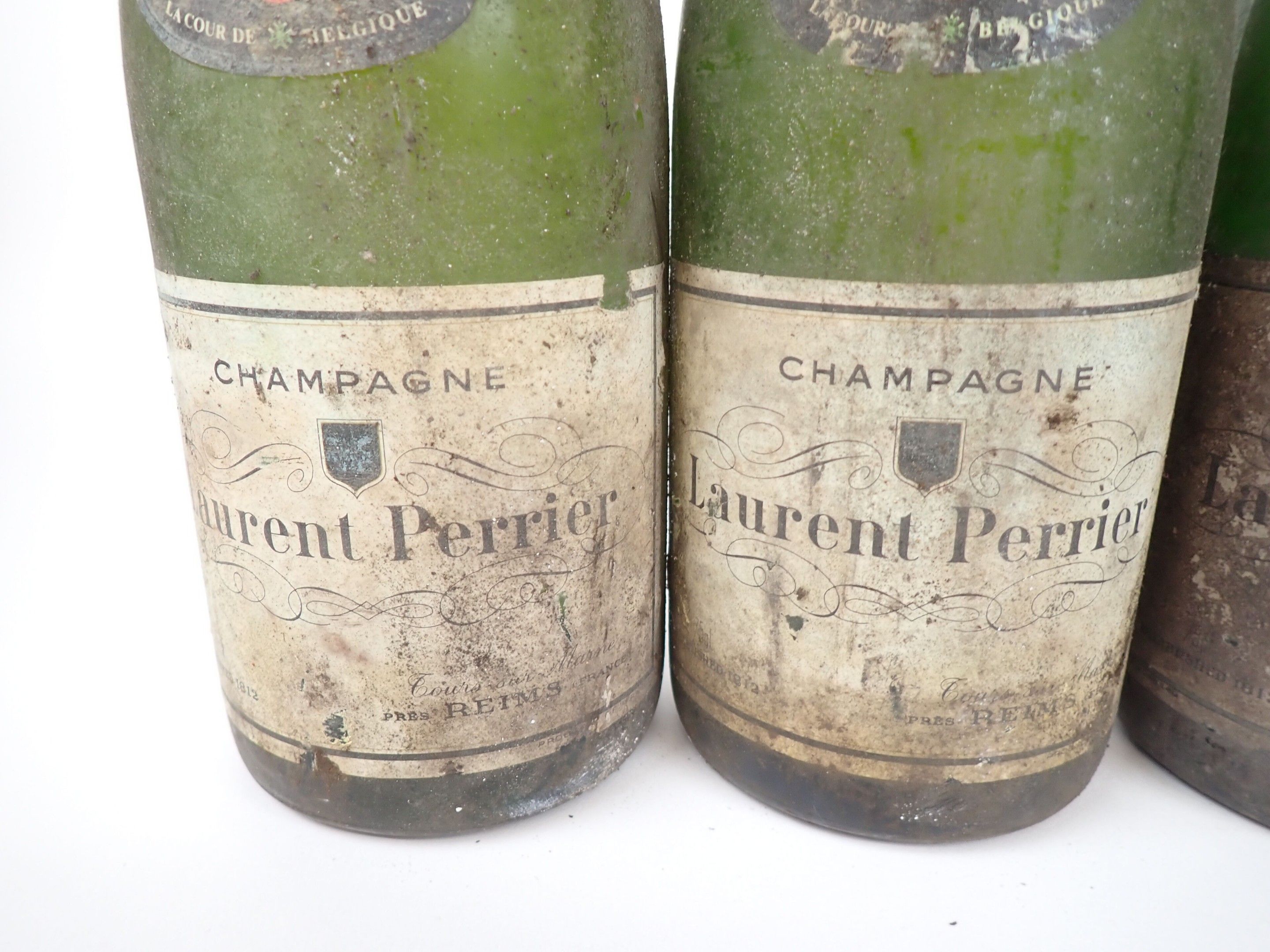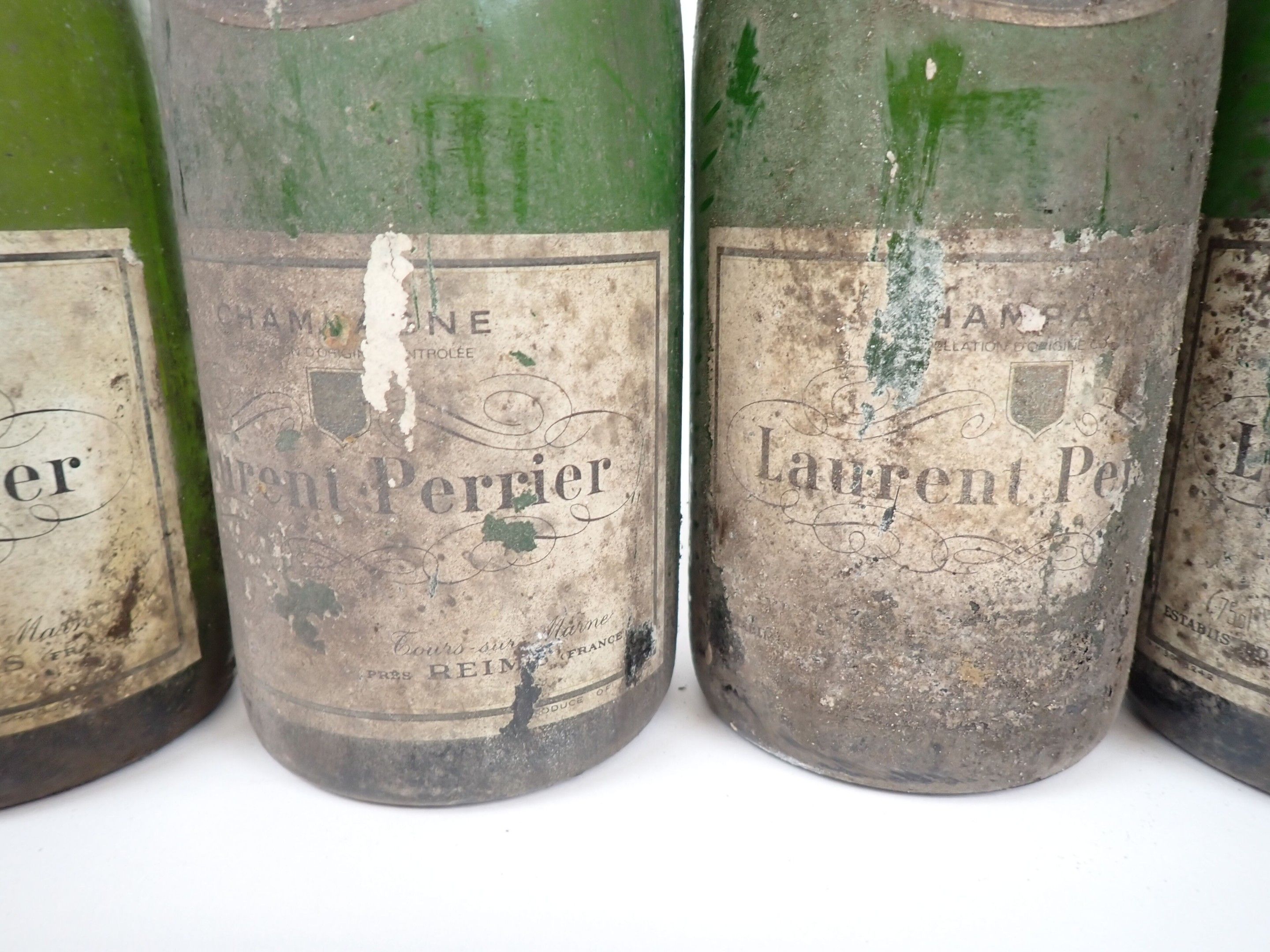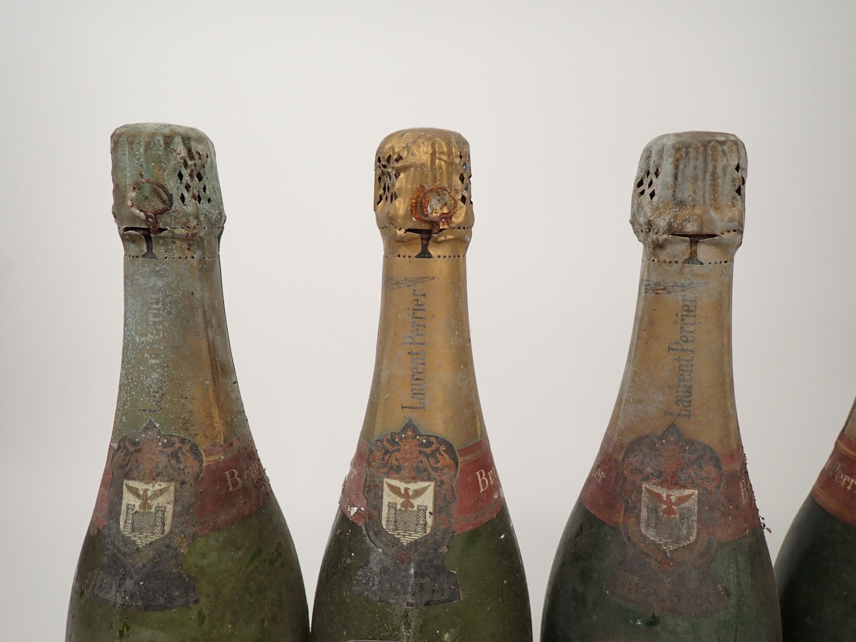 CHAMPAGNE - 6 bottles, Laurent Perrier, Brut. Covers and labels dirty to very dirty and deteriorated to very deteriorated.