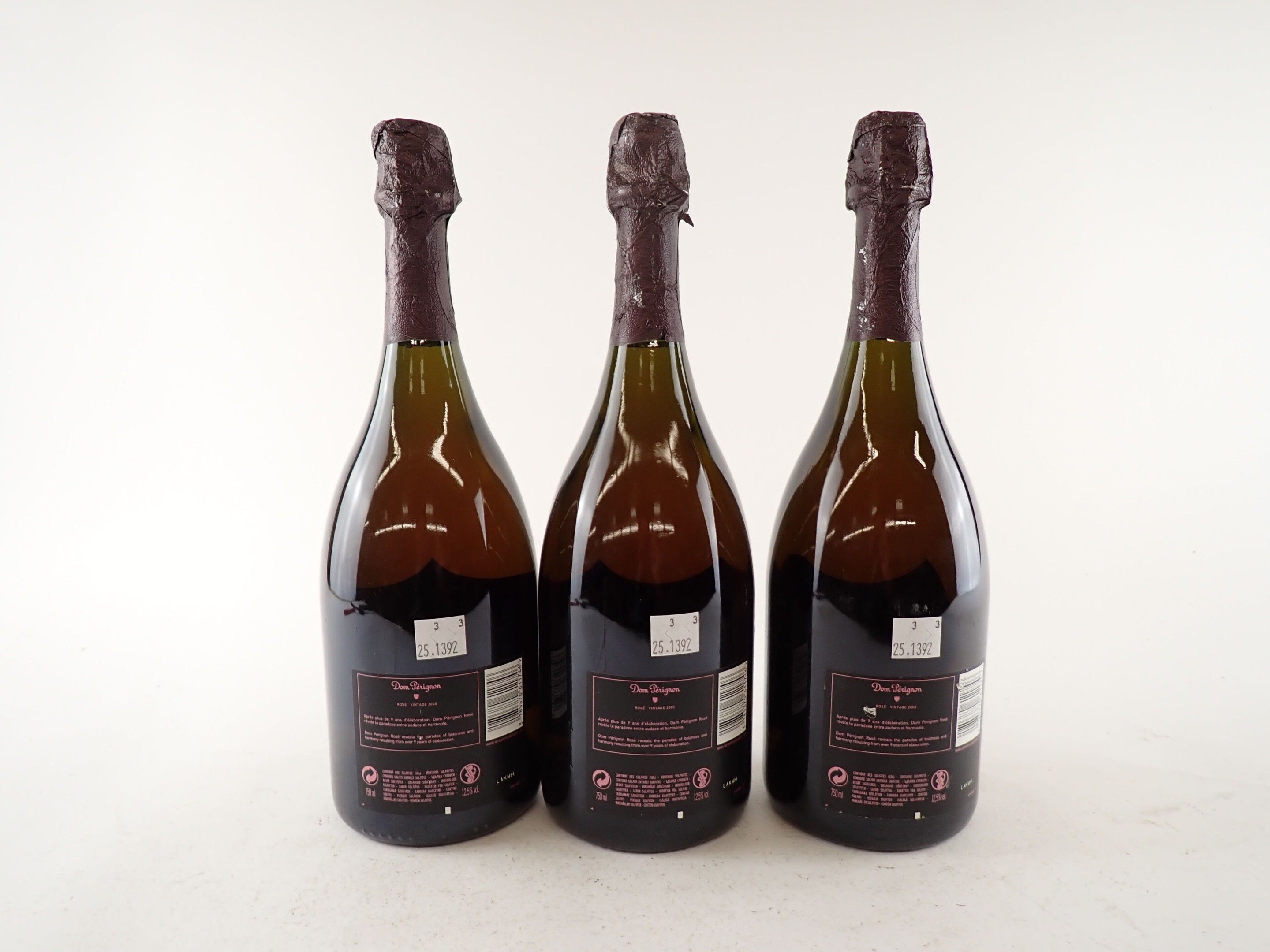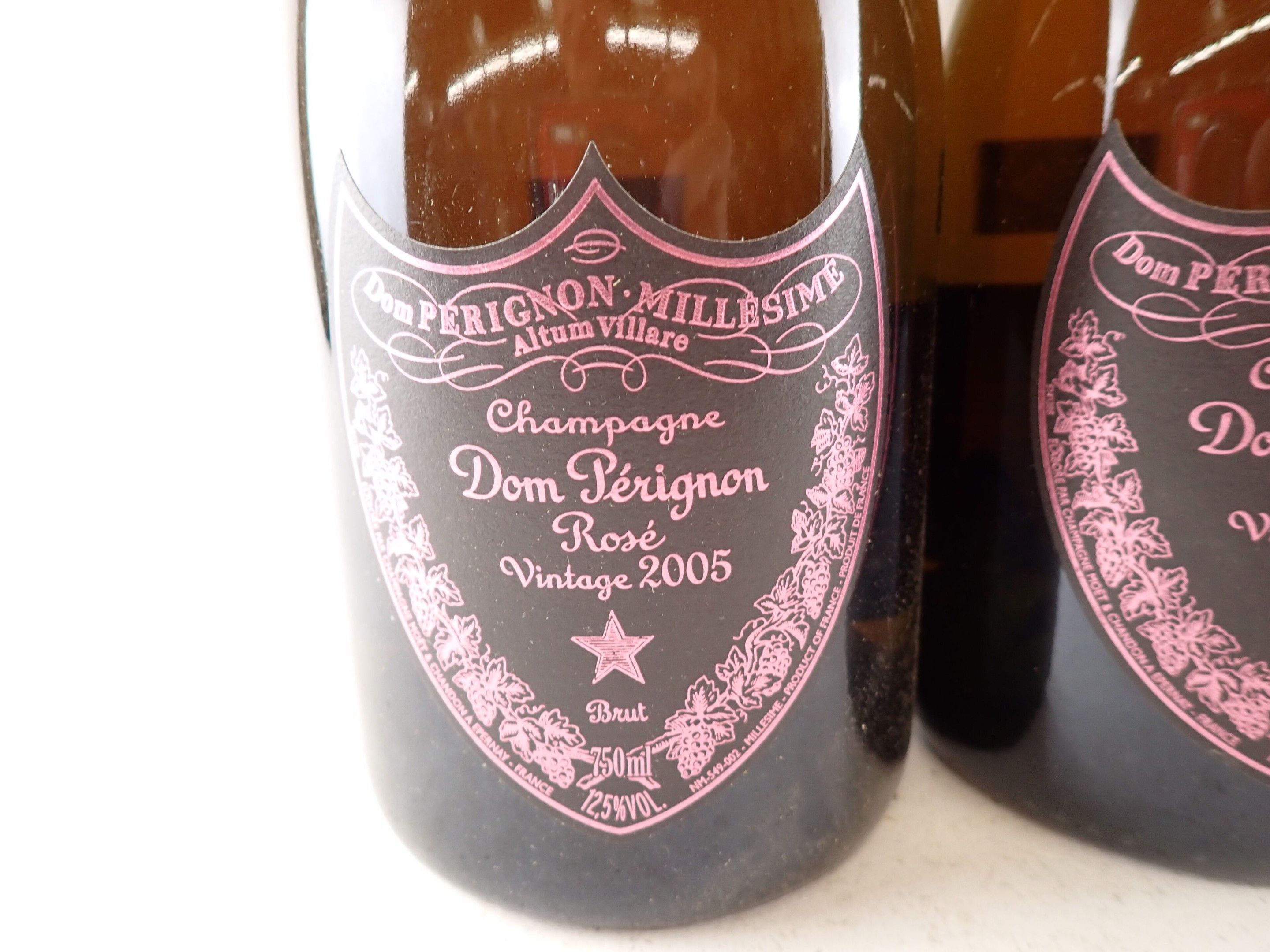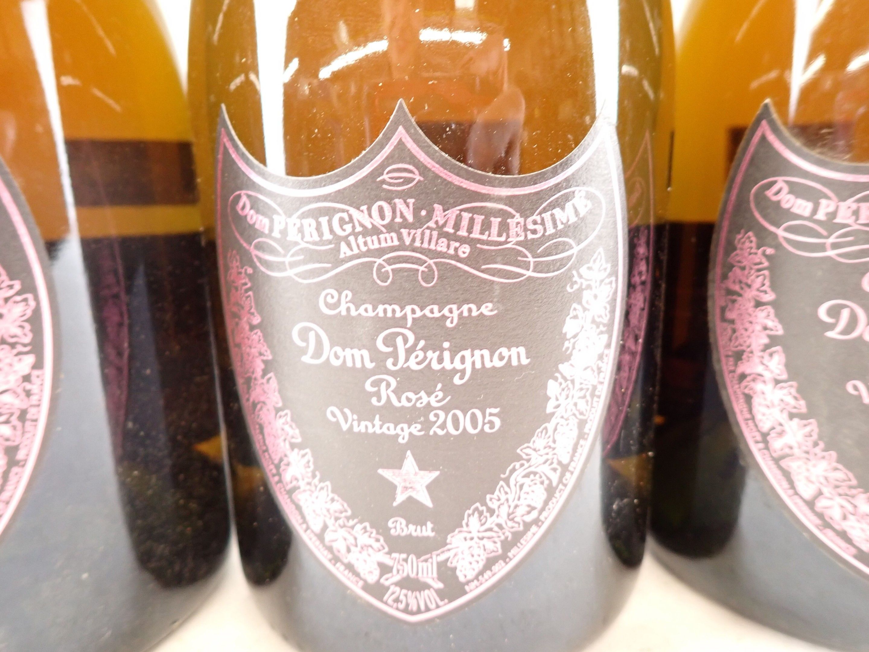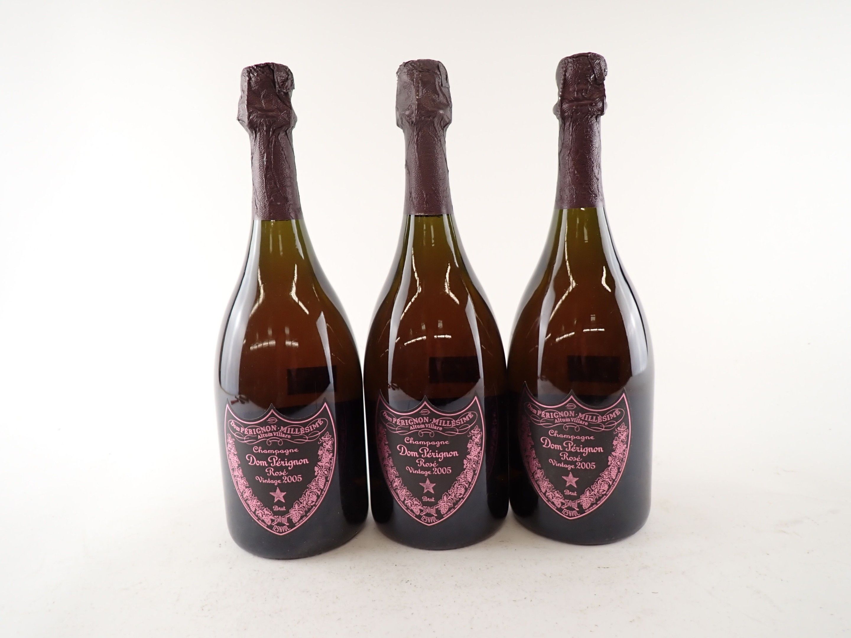 CHAMPAGNE - 3 bottles, Champagne, Dom Pérignon, Rosé, Brut, 2005. One cap with a small tear. One back label slightly damaged.