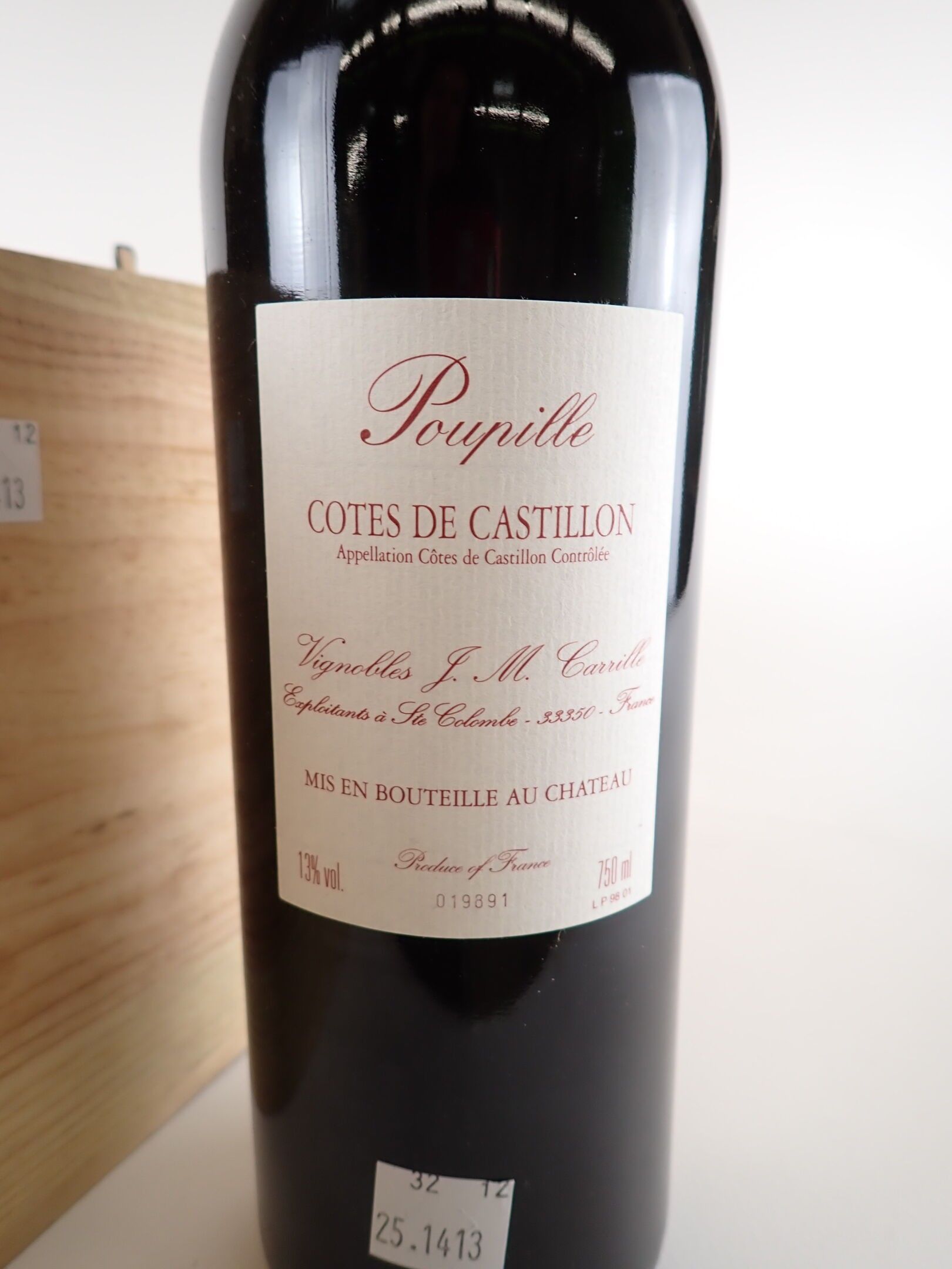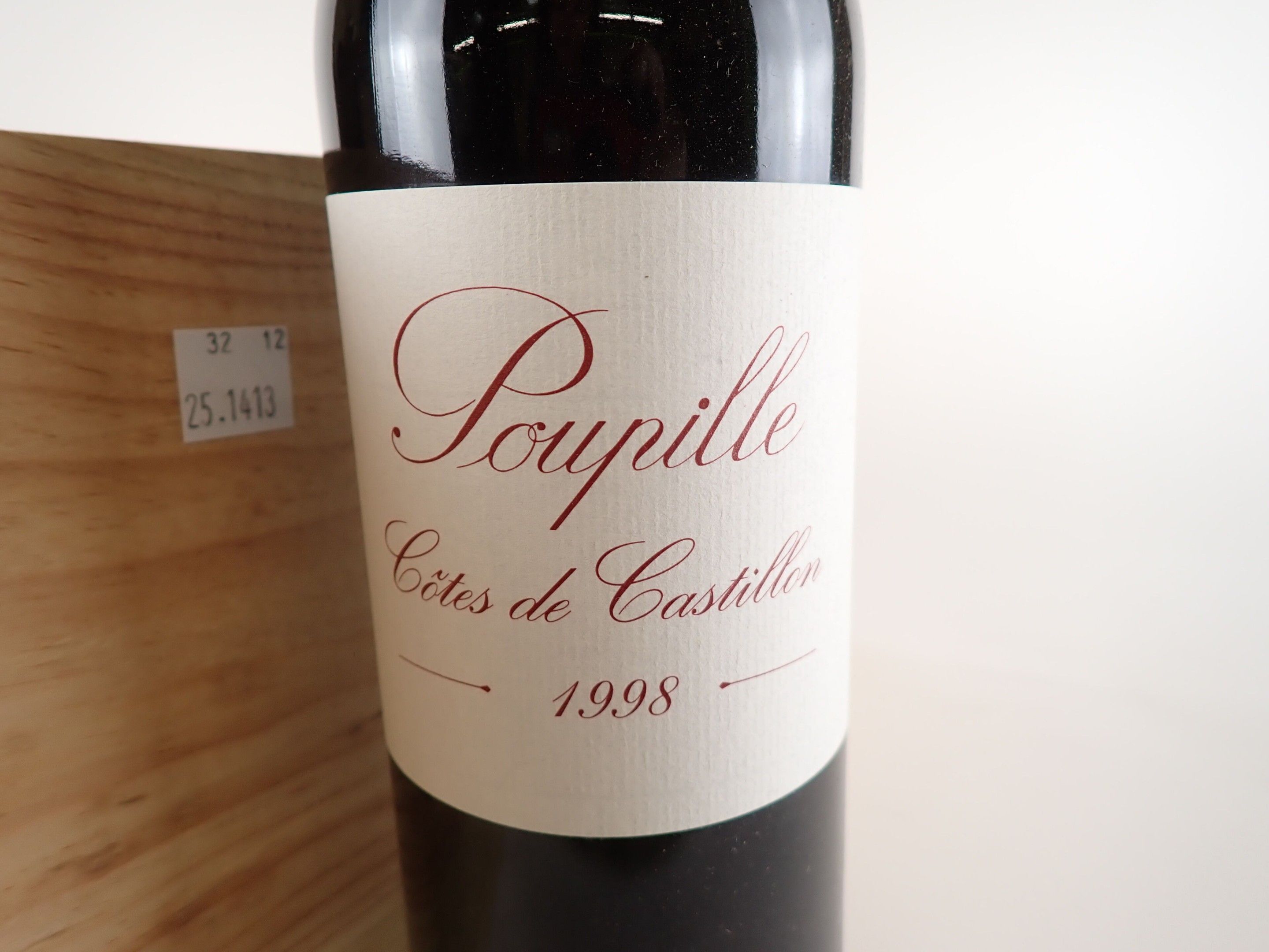 BORDEAUX - 1 CBO, 12 bottles, Côtes de Castillon, Poupille, 1998. Four capsules with very slightly damaged lower skirt. One label and one back label stained.